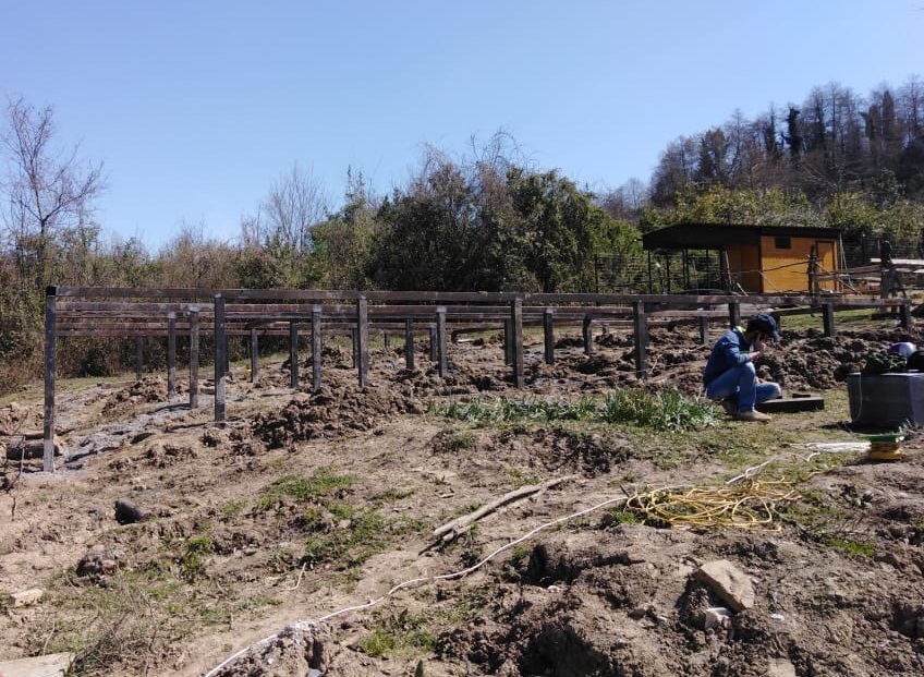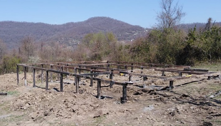 Ростверк изготовлен из калиброванного клееного бруса и защищен снаружи цементно-стружечной плитой