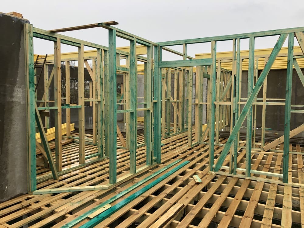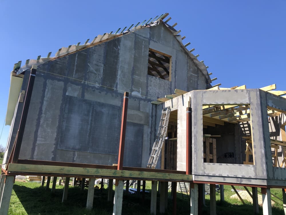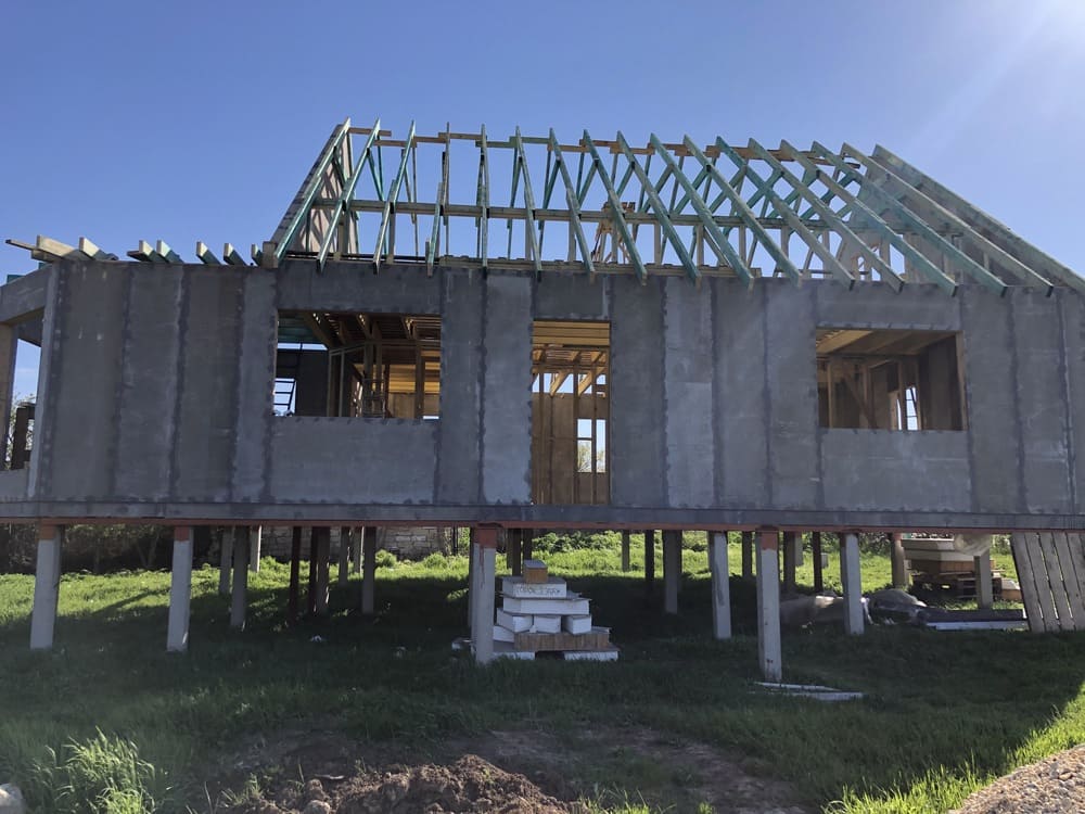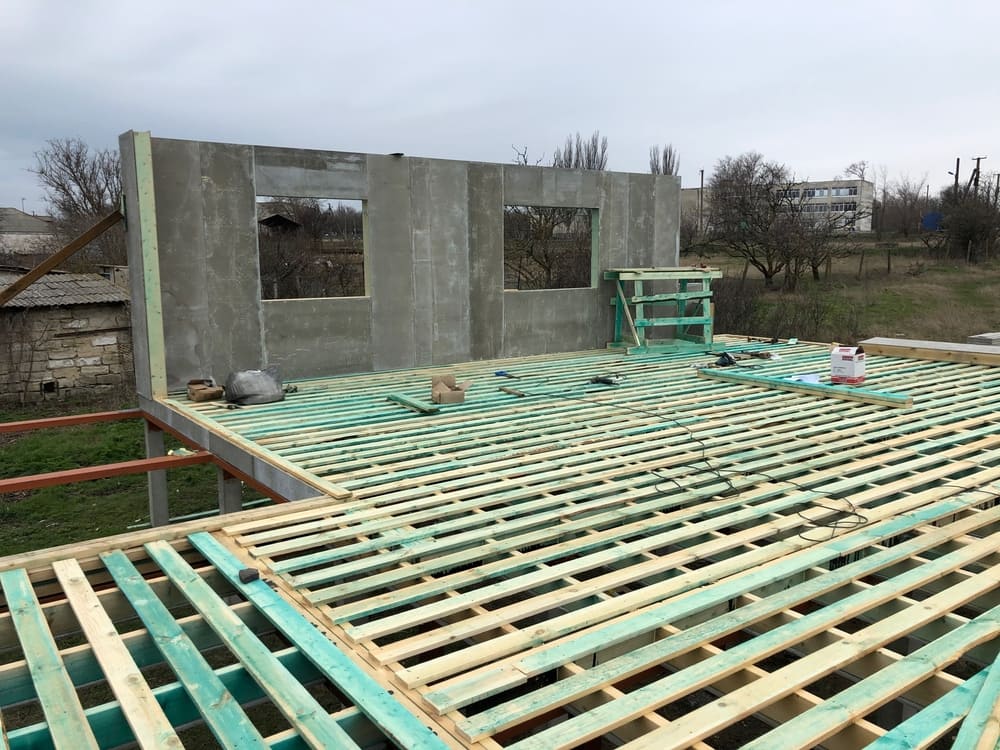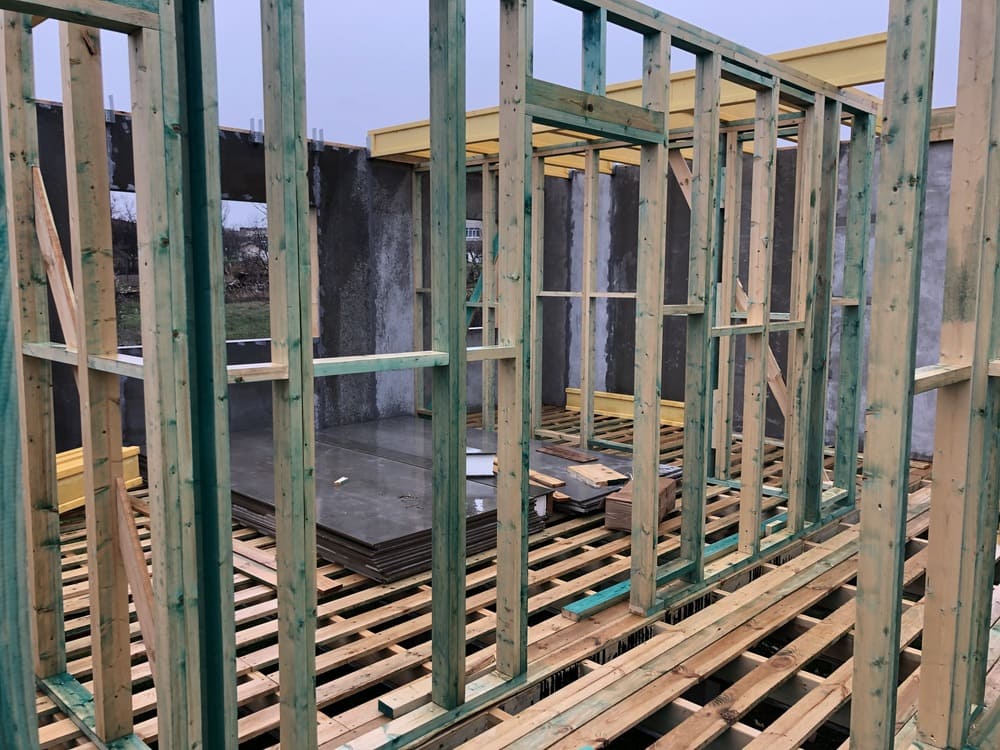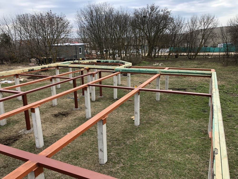 Ростверк изготовлен из калиброванного клееного бруса и защищен снаружи цементно-стружечной плитой