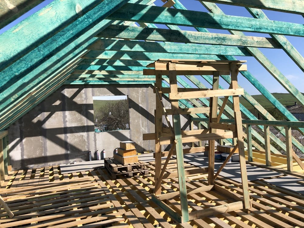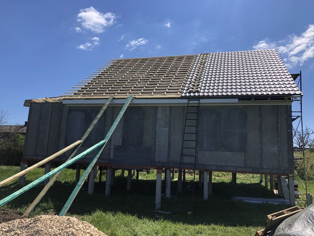 Кровля может быть построена из бруса 150х50мм или SIP панелей. В качестве кровельного материала можно использовать: металлочерепицу, битумную и керамическую черепицу. Также производим кровельные шовные сэндвич-панели.