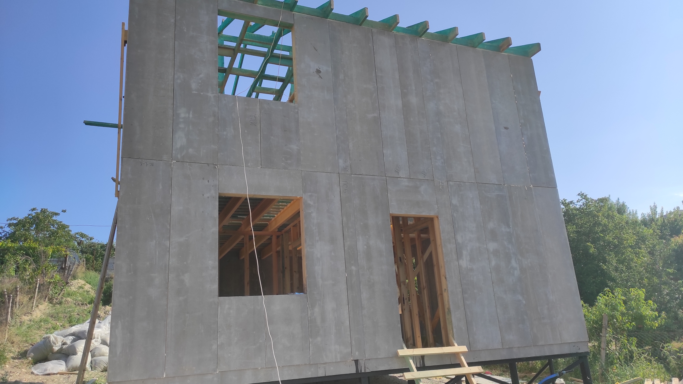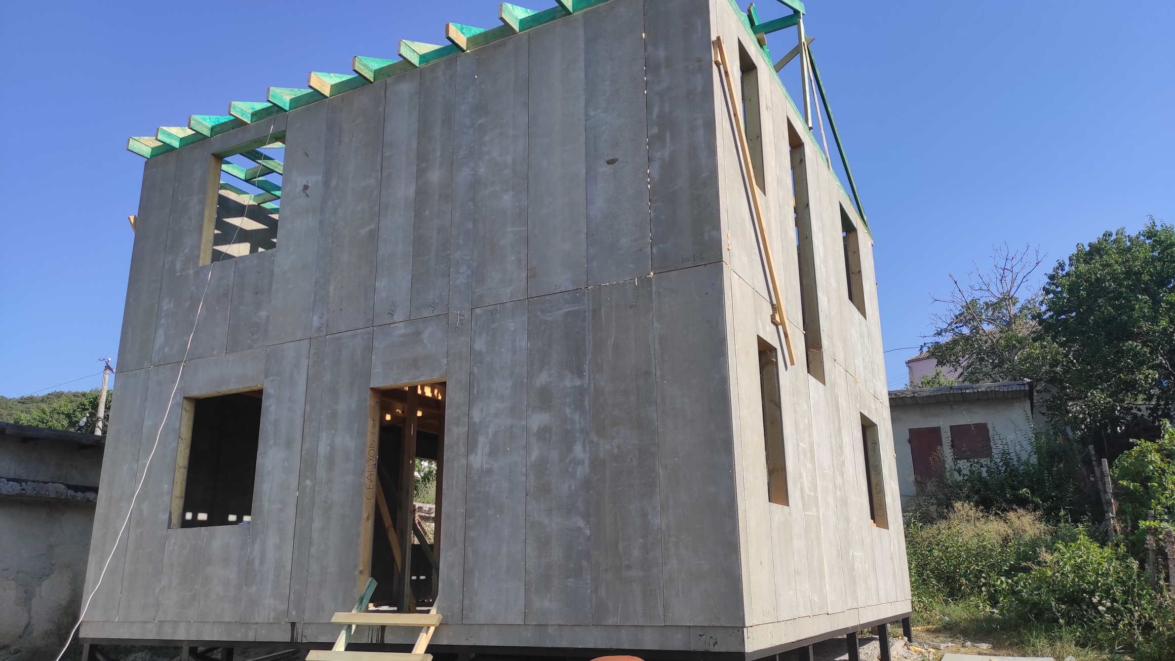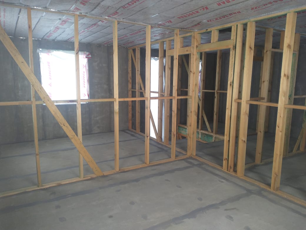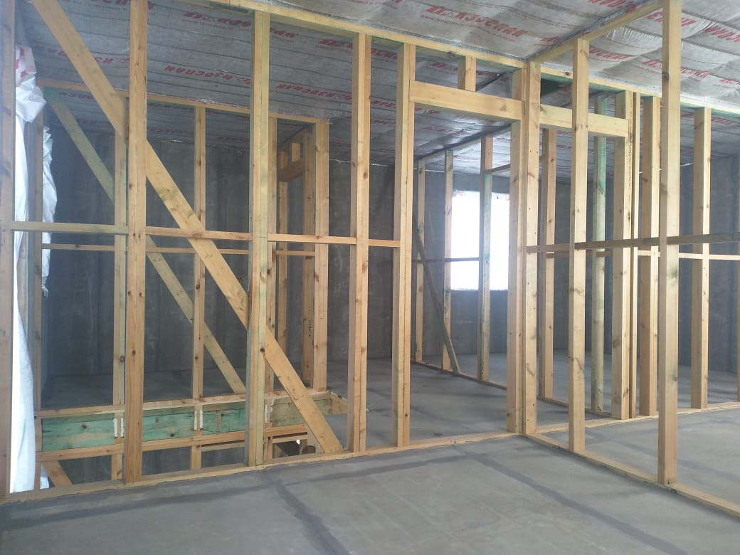 Ростверк изготовлен из калиброванного клееного бруса и защищен снаружи цементно-стружечной плитой