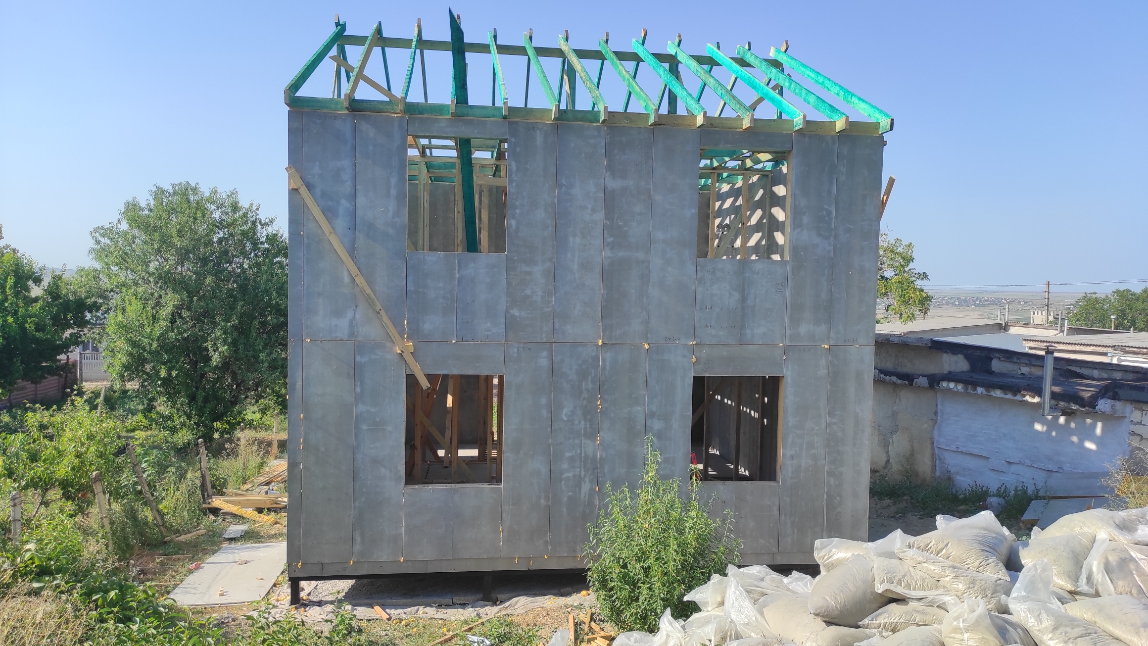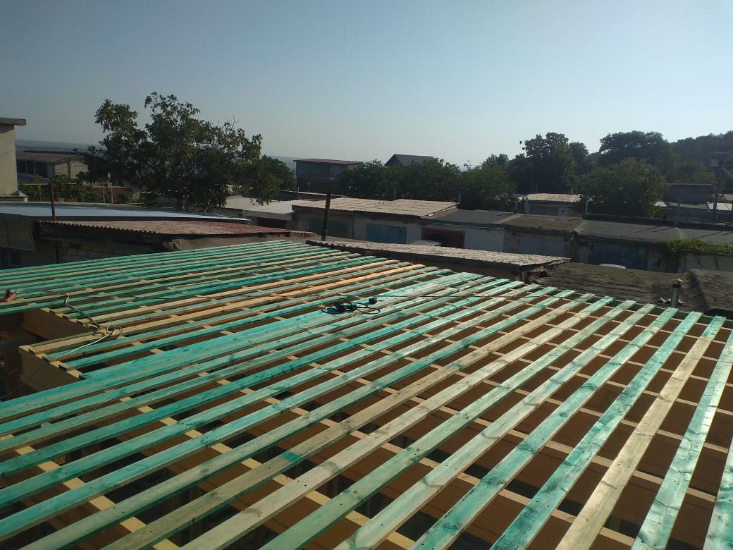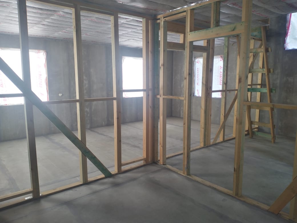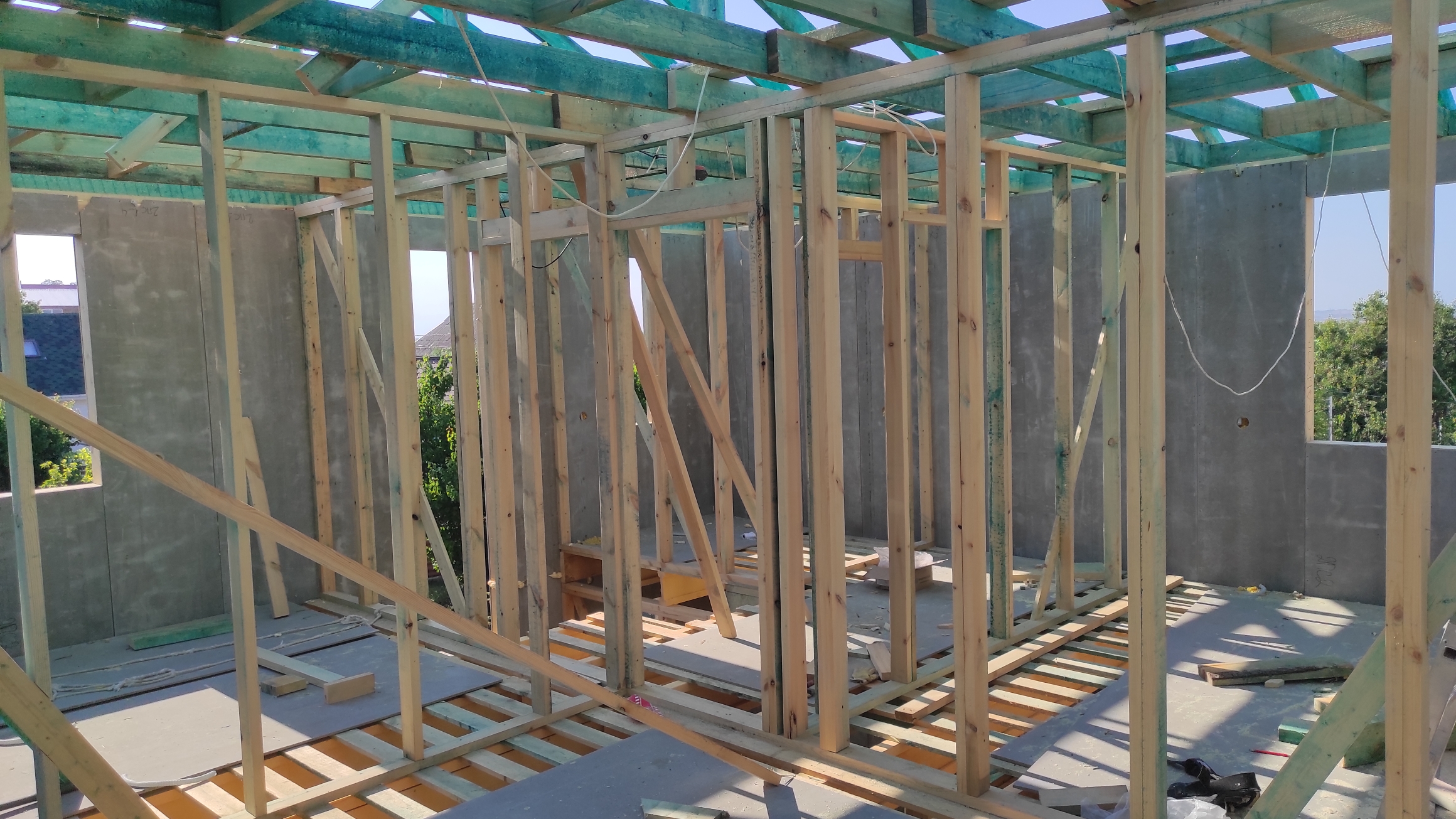 Ростверк изготовлен из калиброванного клееного бруса и защищен снаружи цементно-стружечной плитой