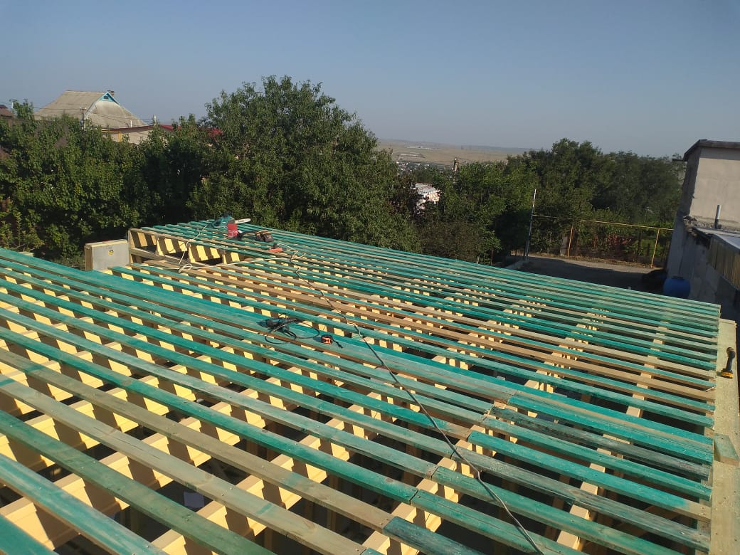 Кровля может быть построена из бруса 150х50мм или SIP панелей. В качестве кровельного материала можно использовать: металлочерепицу, битумную и керамическую черепицу. Также производим кровельные шовные сэндвич-панели.
