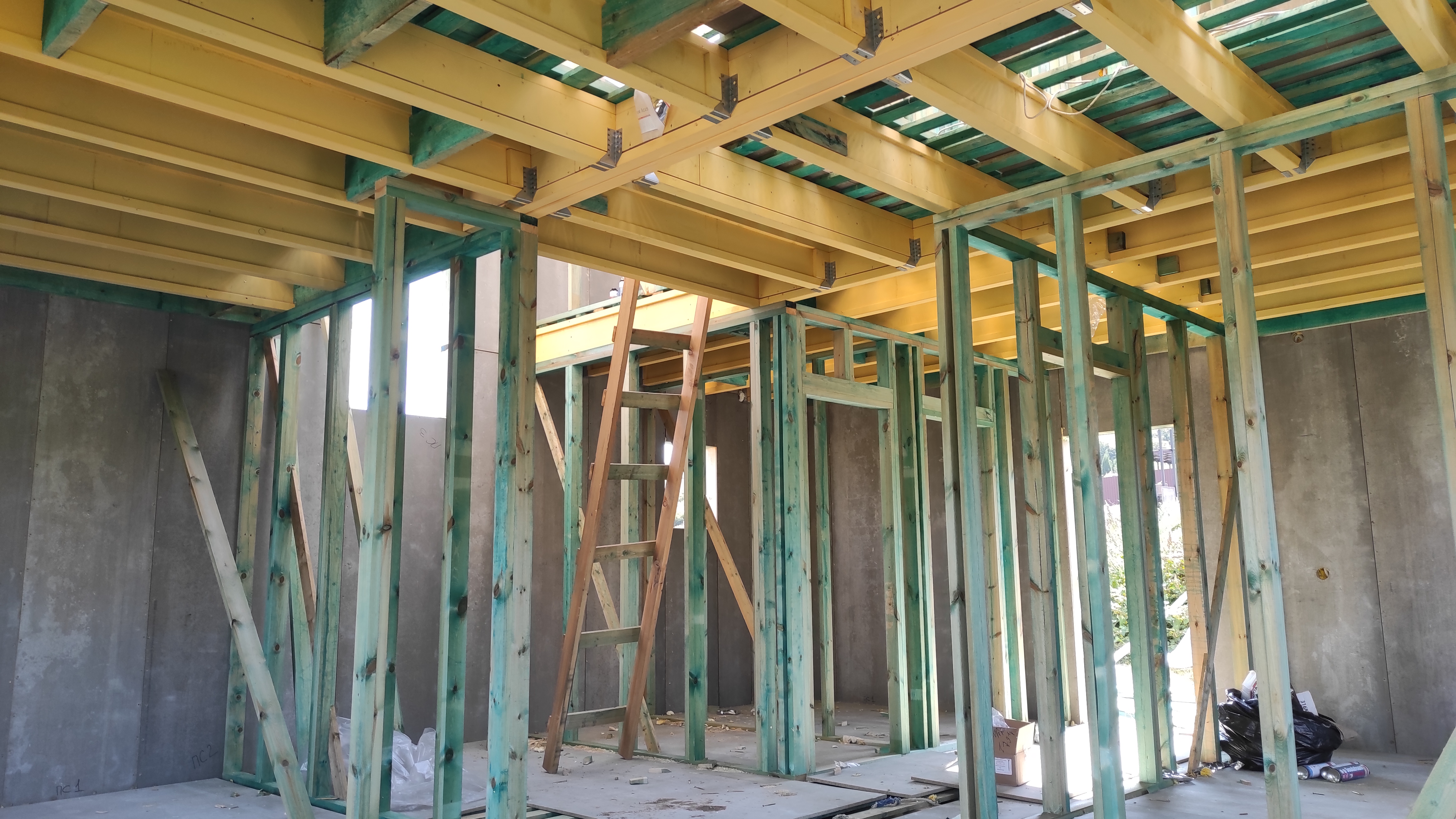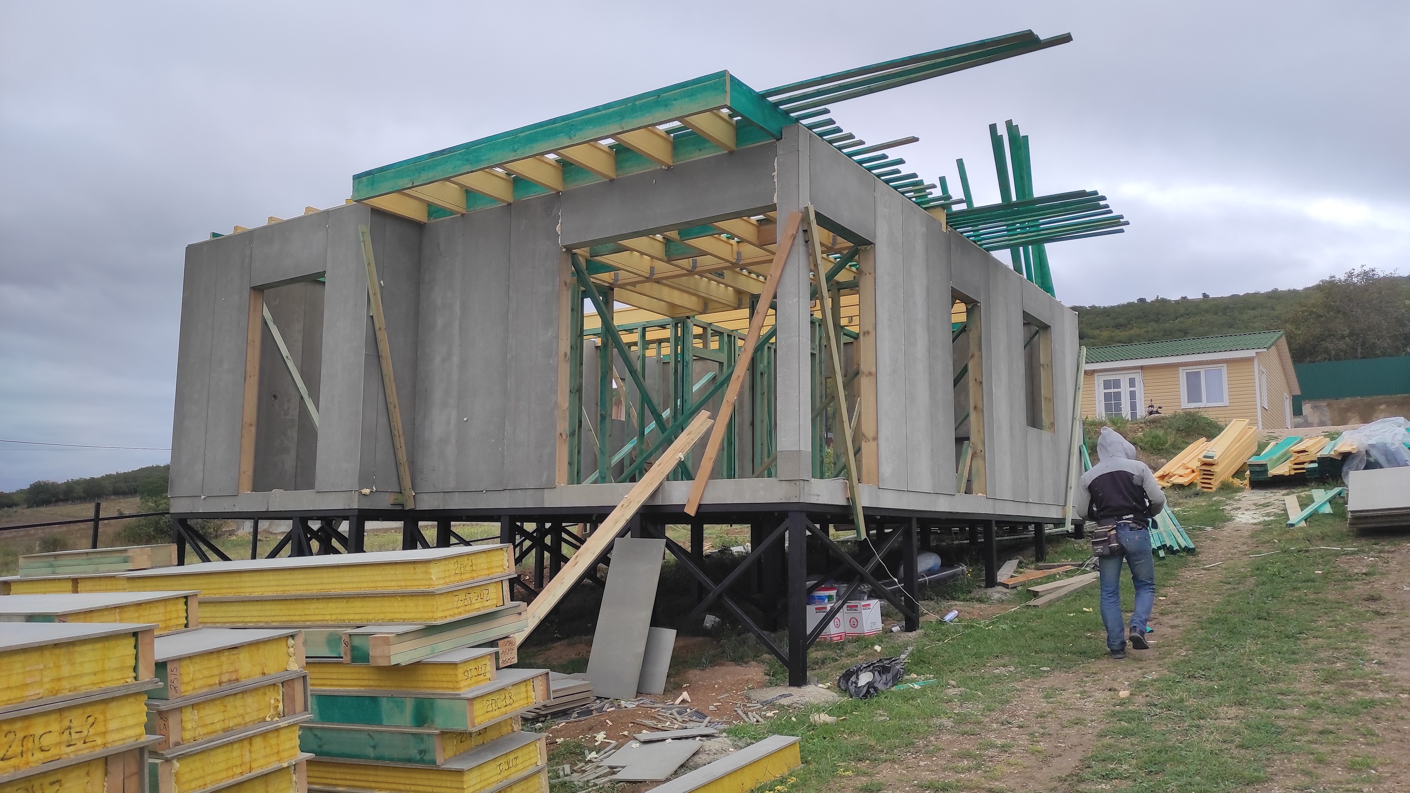 Ростверк изготовлен из калиброванного клееного бруса и защищен снаружи цементно-стружечной плитой