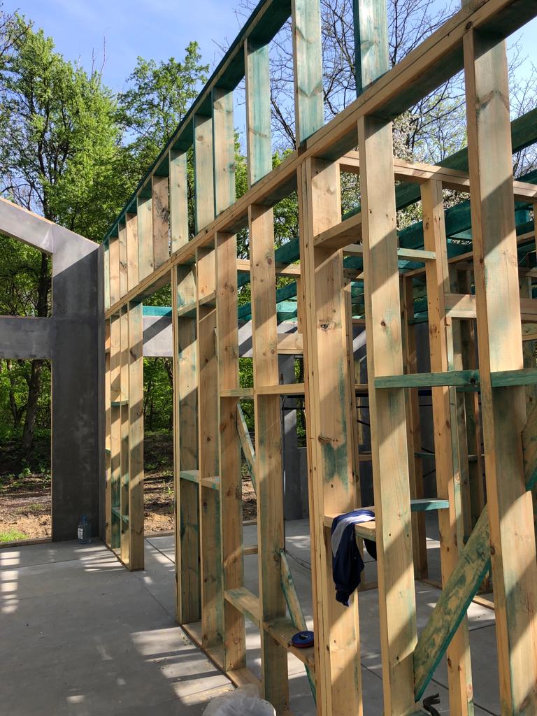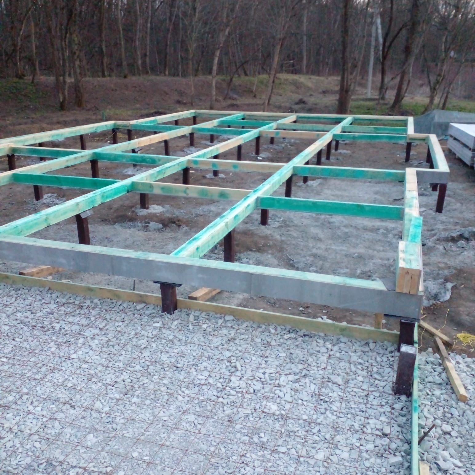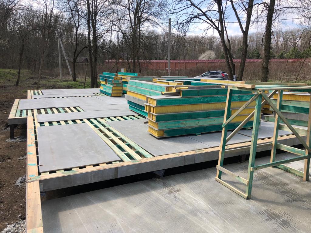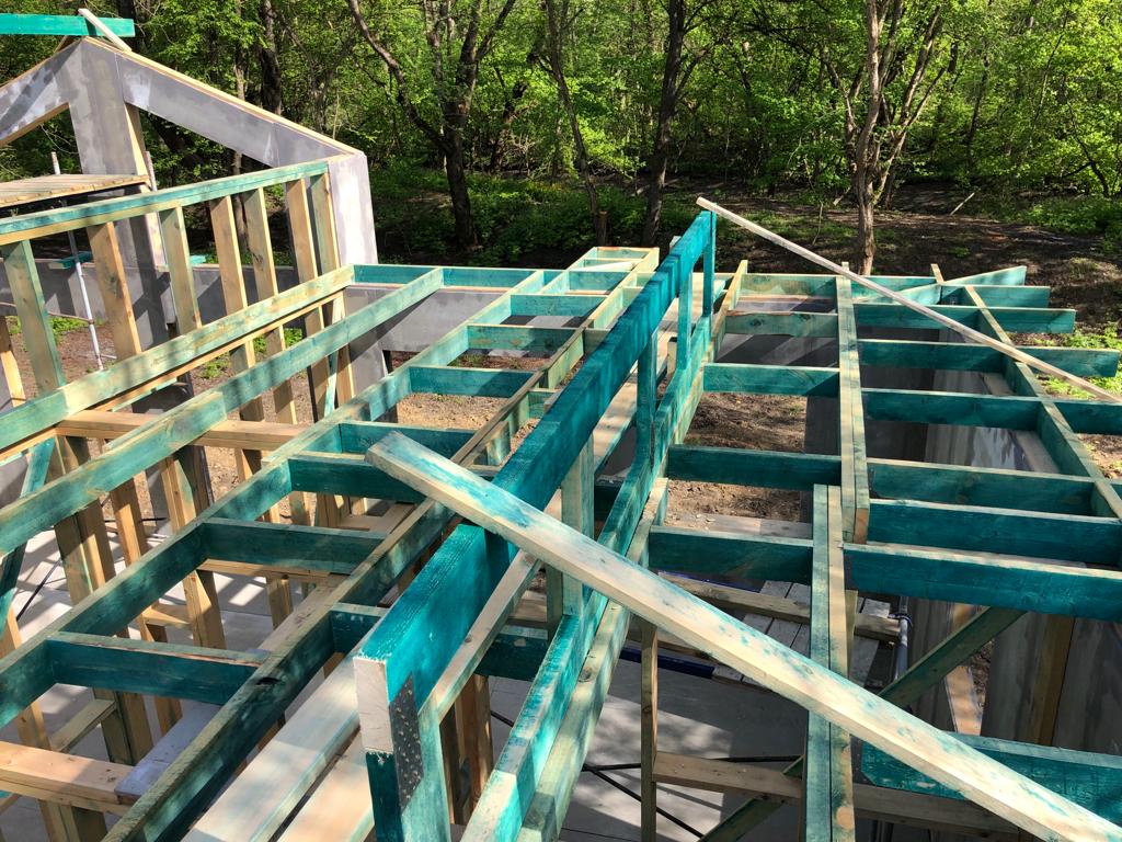 Ростверк изготовлен из калиброванного клееного бруса и защищен снаружи цементно-стружечной плитой