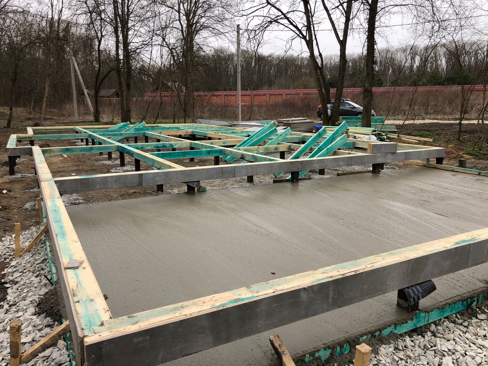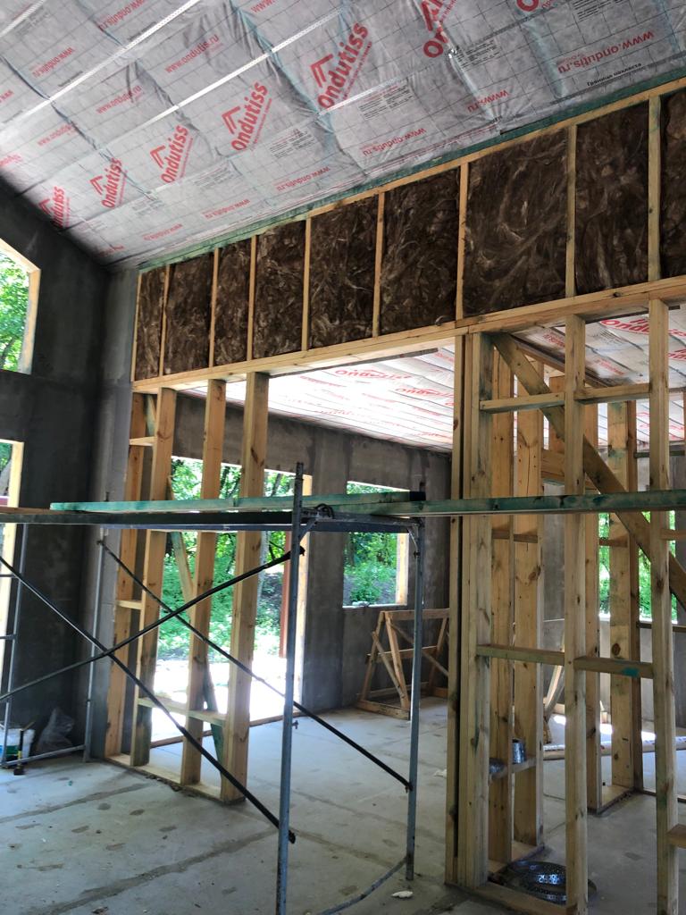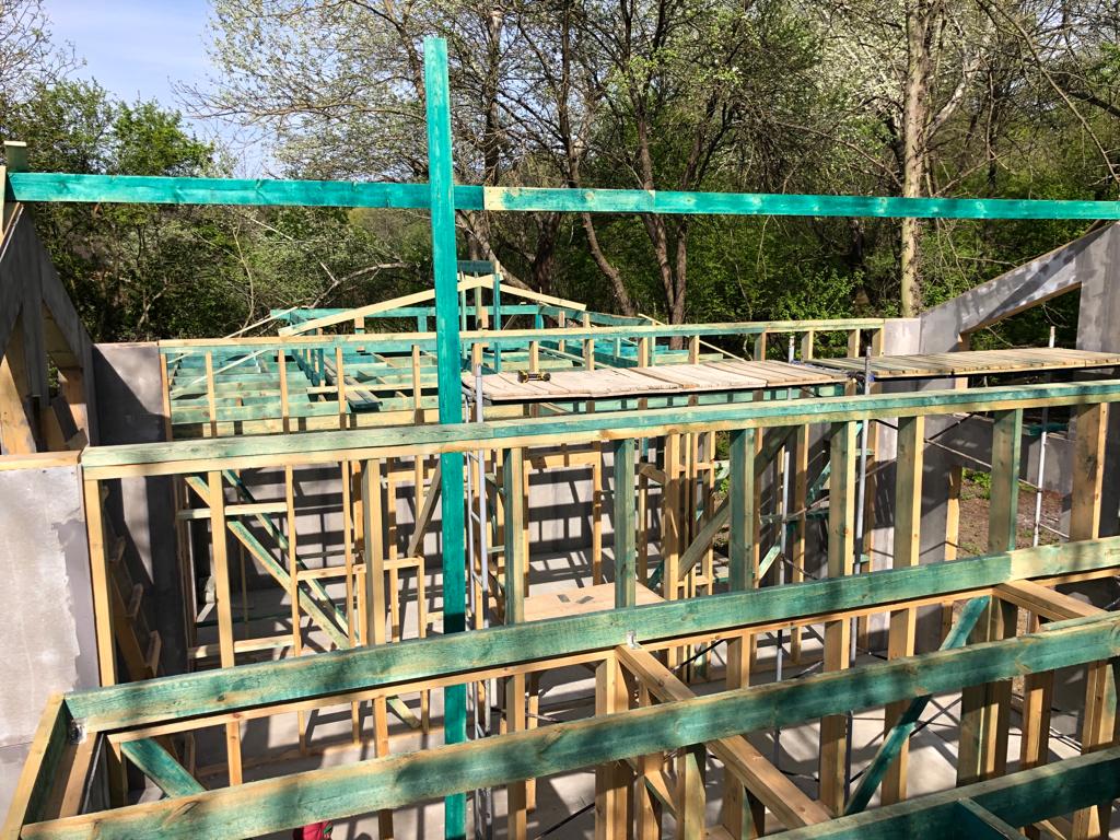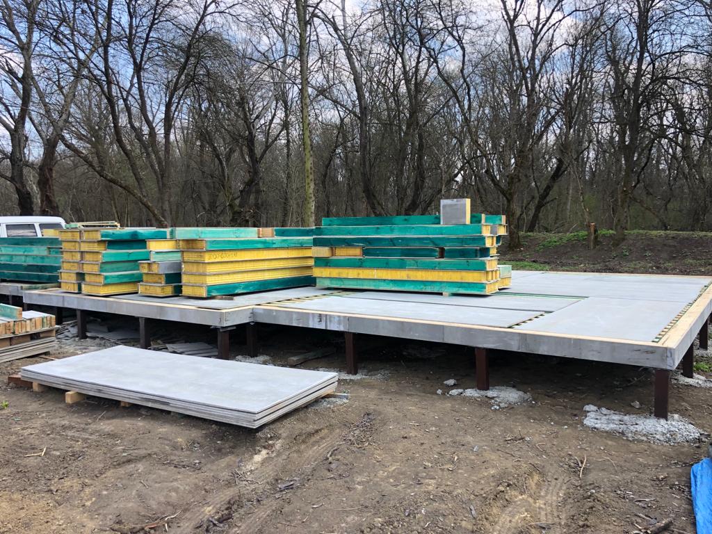 Ростверк изготовлен из калиброванного клееного бруса и защищен снаружи цементно-стружечной плитой