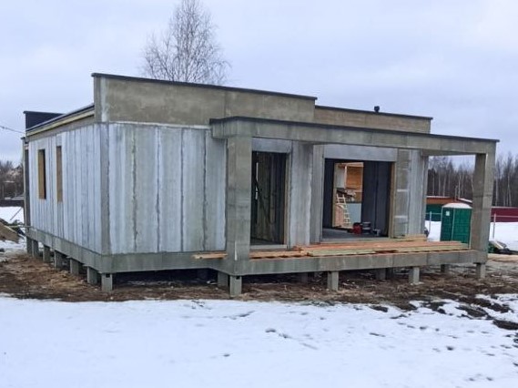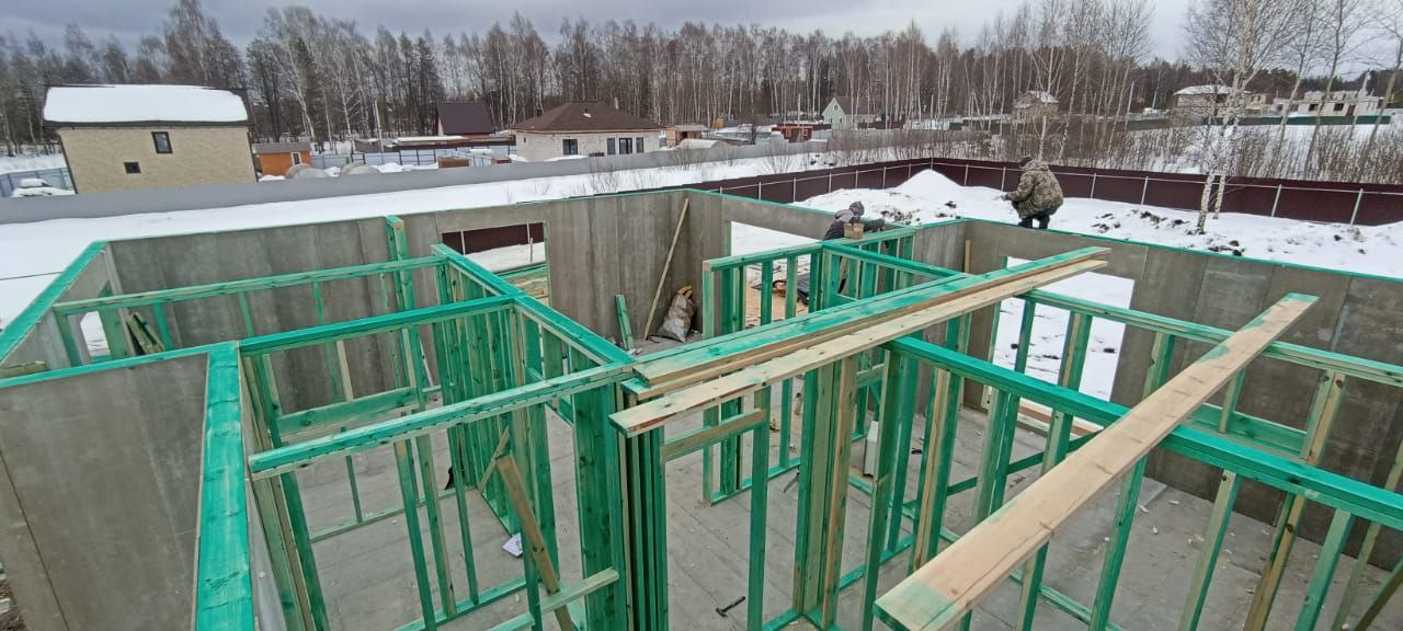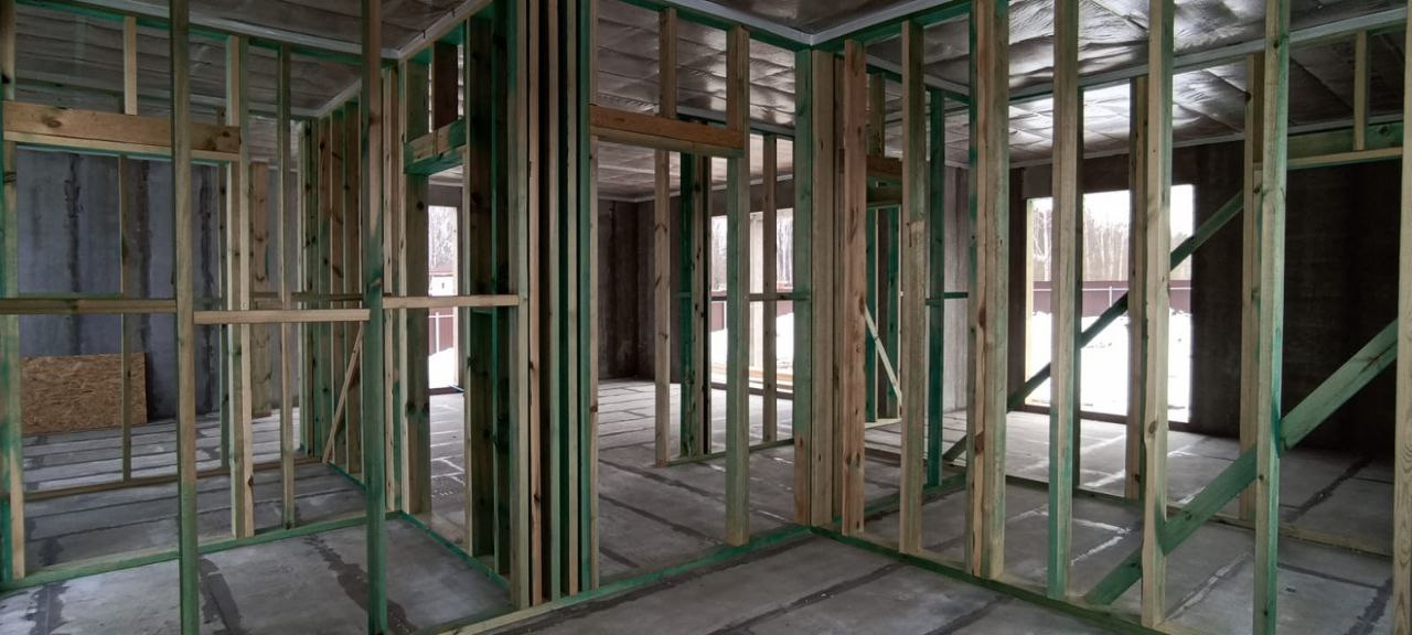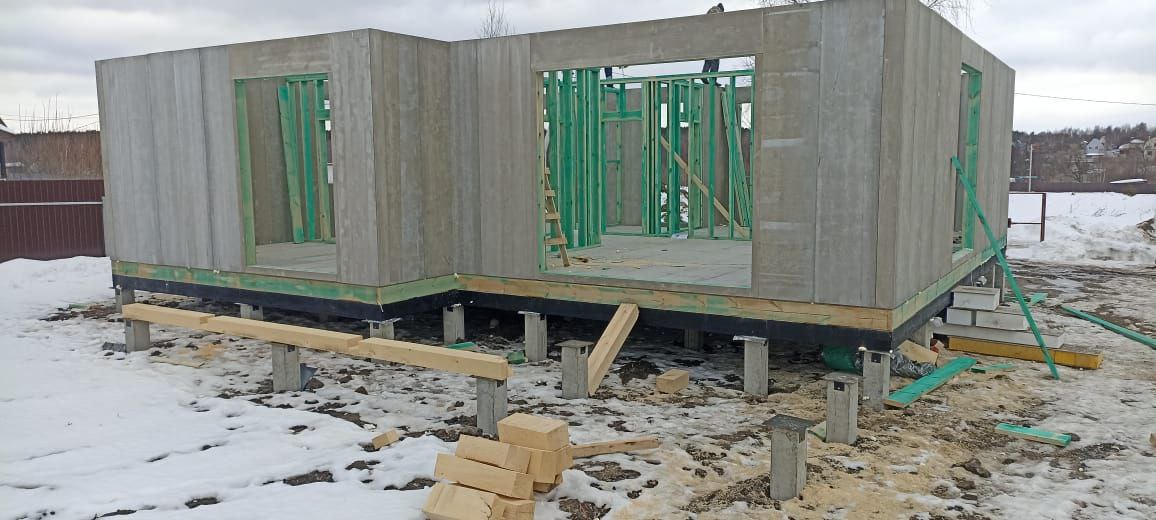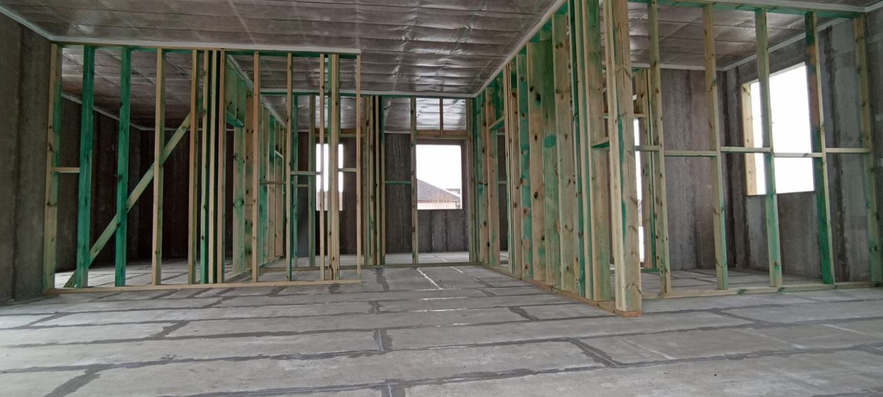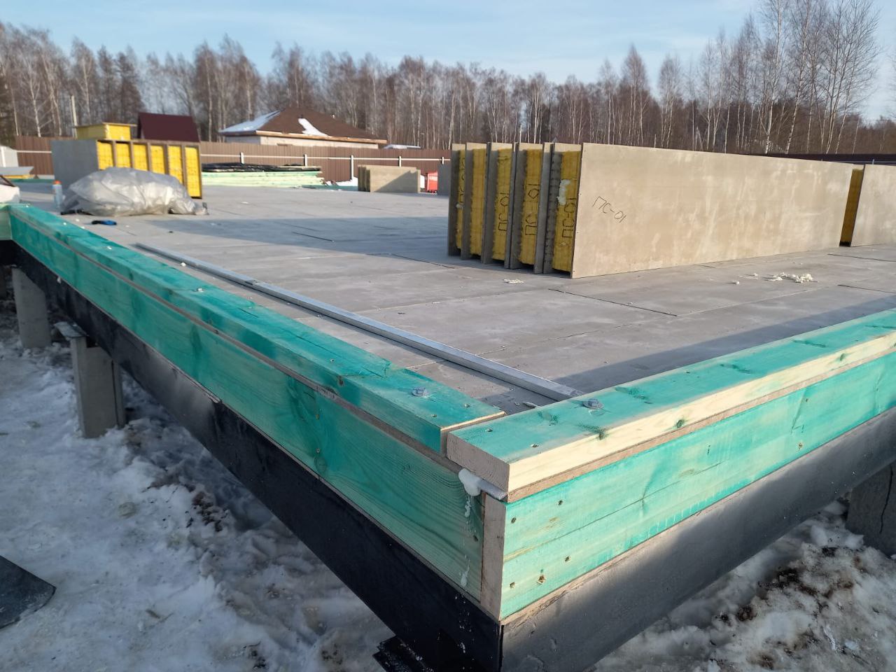 Ростверк изготовлен из калиброванного клееного бруса и защищен снаружи цементно-стружечной плитой