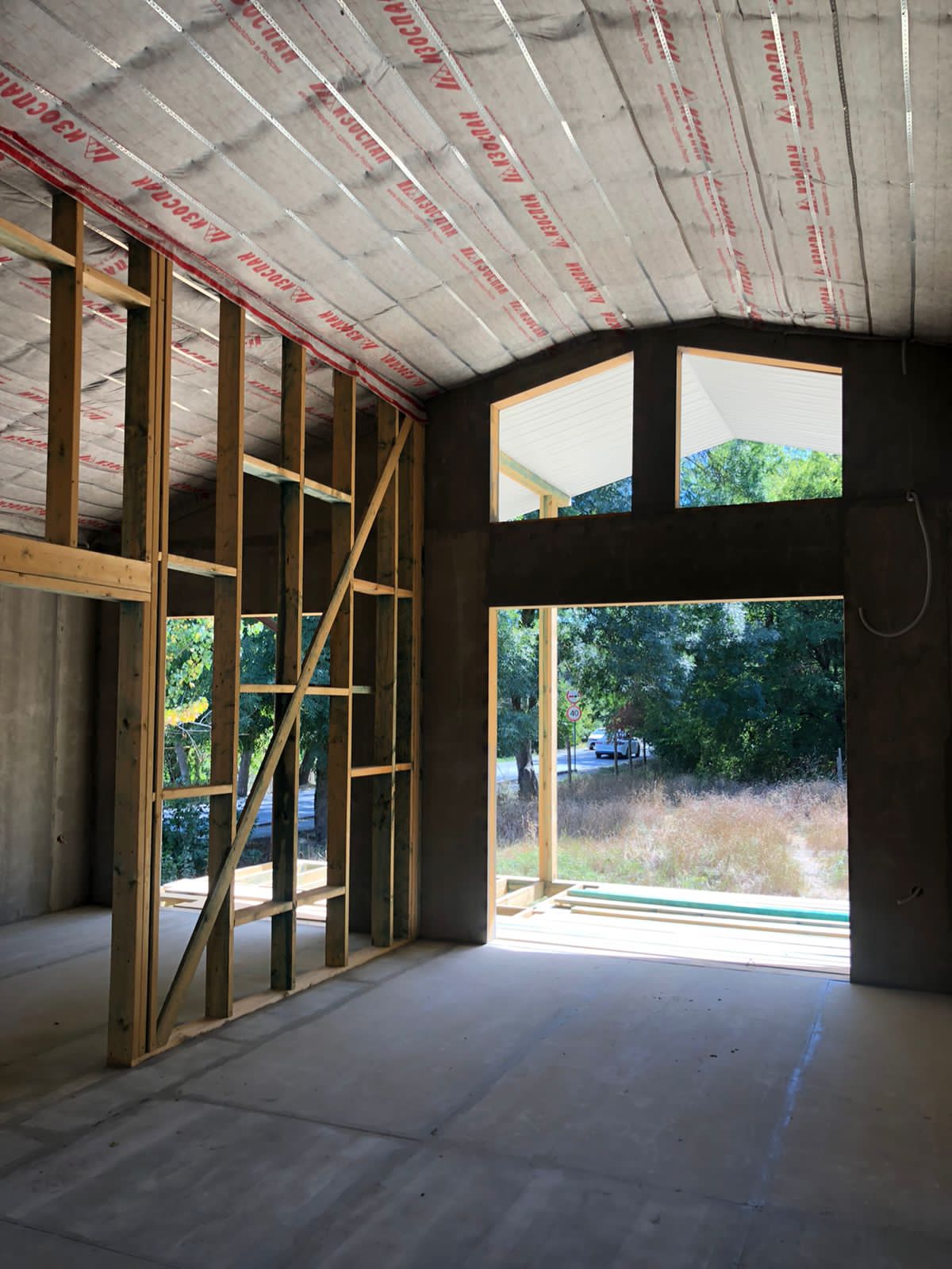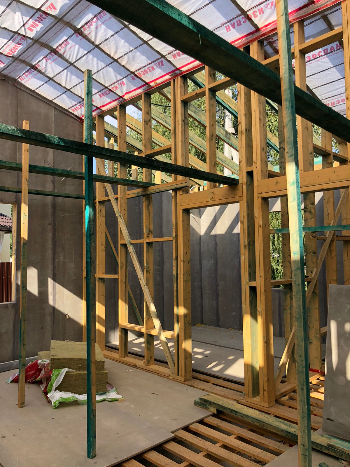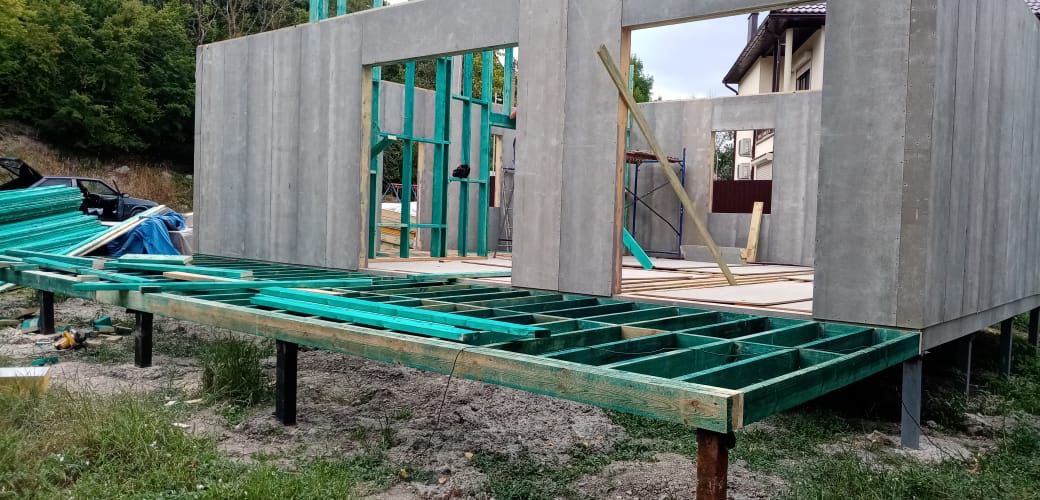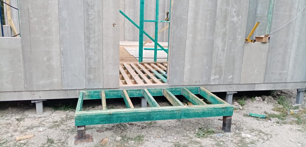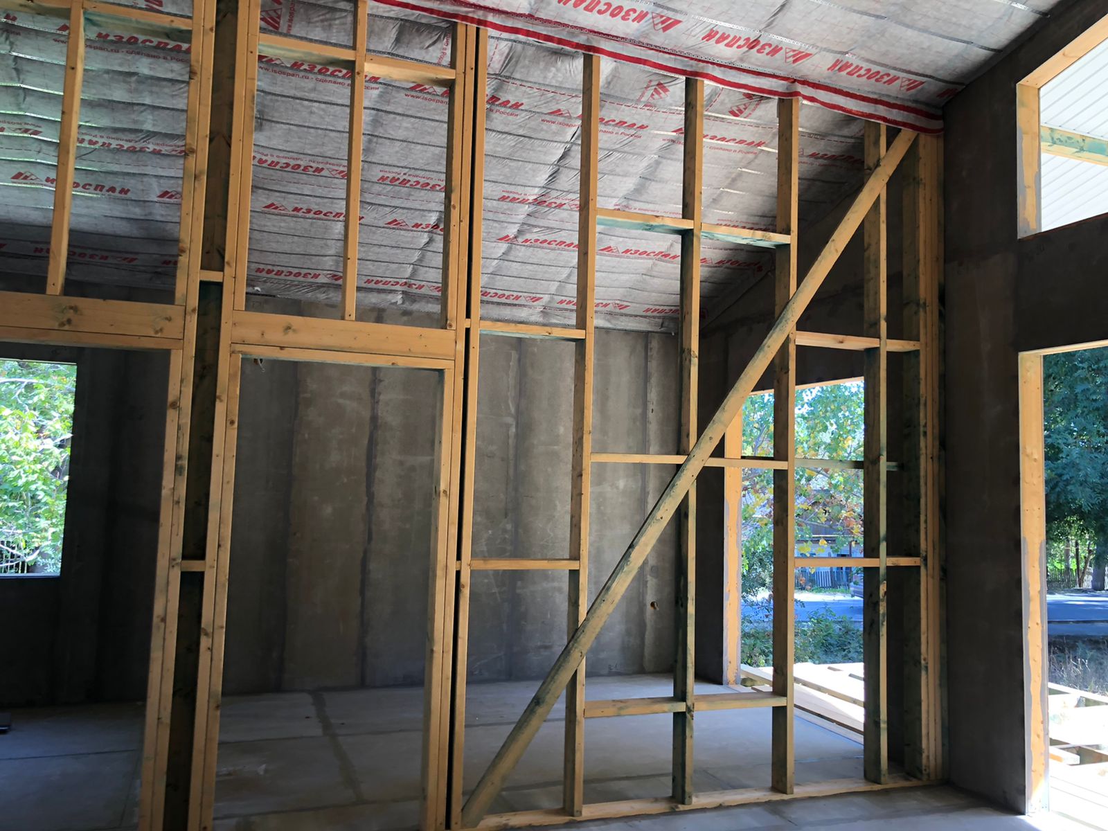Ростверк изготовлен из калиброванного клееного бруса и защищен снаружи цементно-стружечной плитой