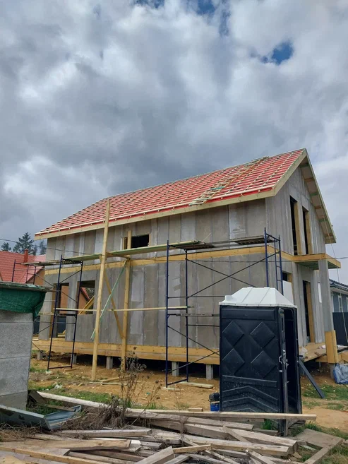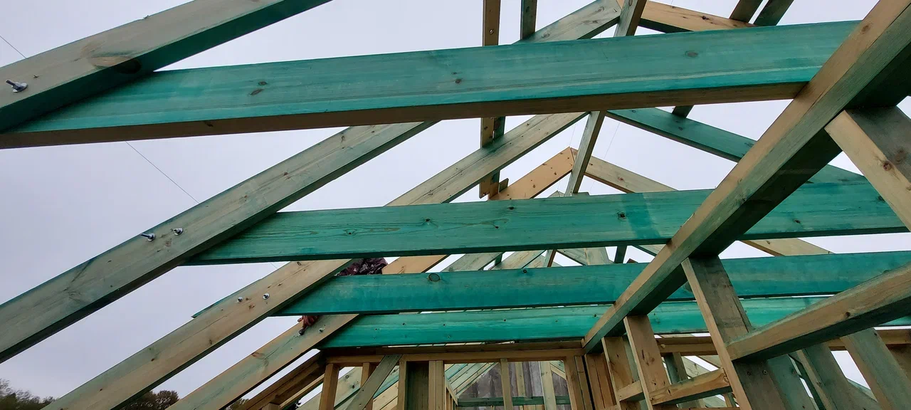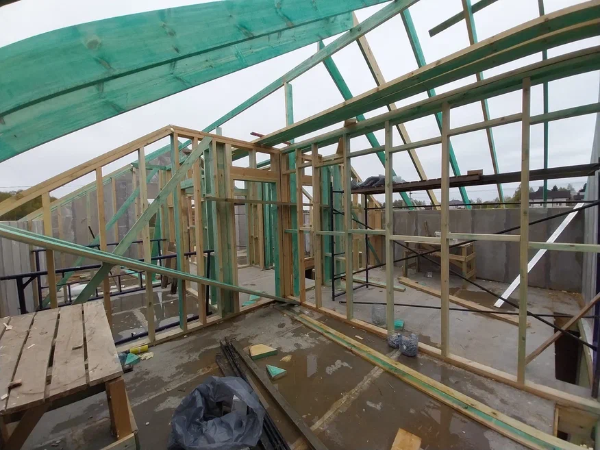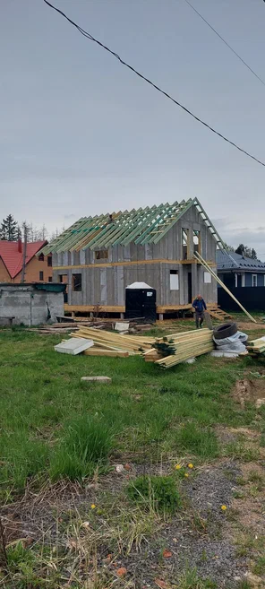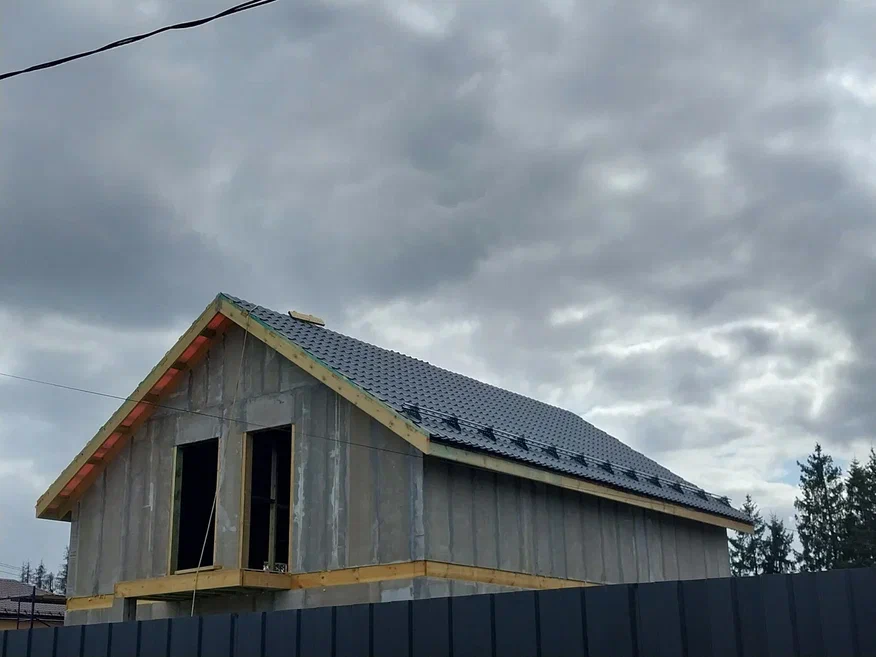 Кровля может быть построена из бруса 150х50мм или SIP панелей. В качестве кровельного материала можно использовать: металлочерепицу, битумную и керамическую черепицу. Также производим кровельные шовные сэндвич-панели.