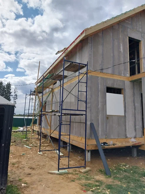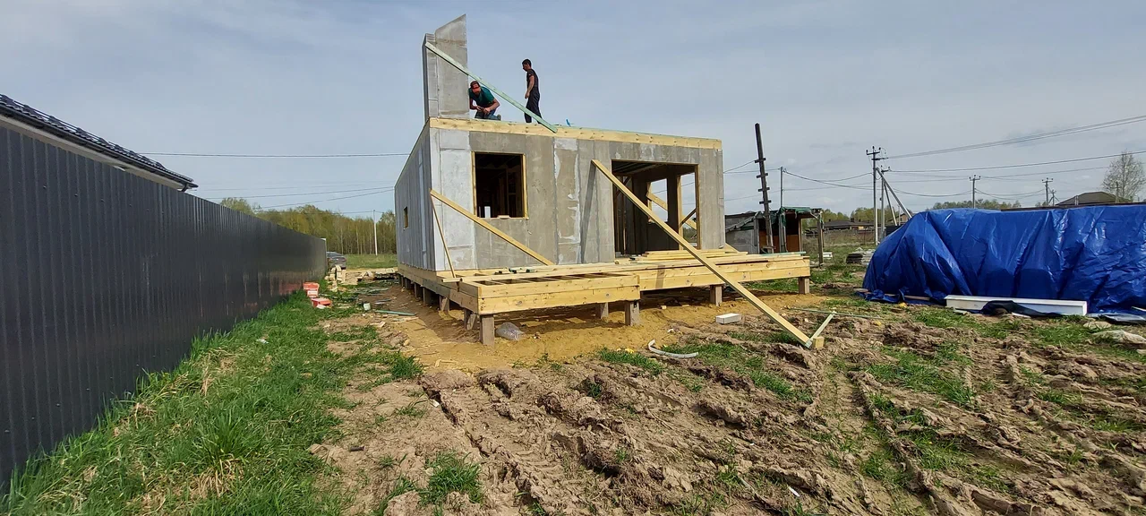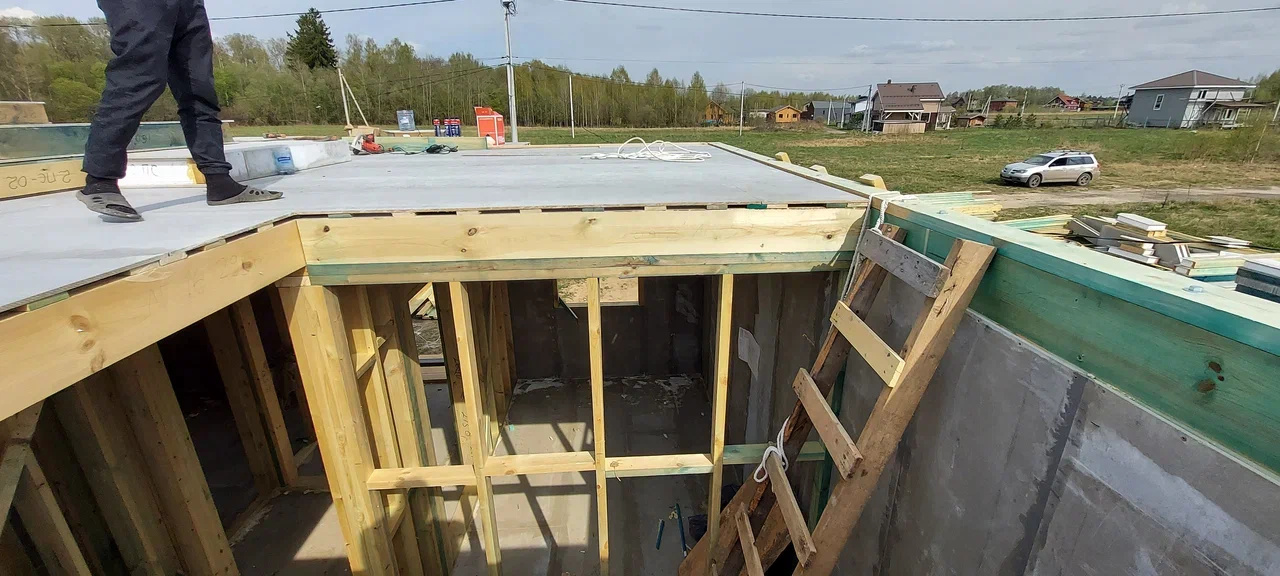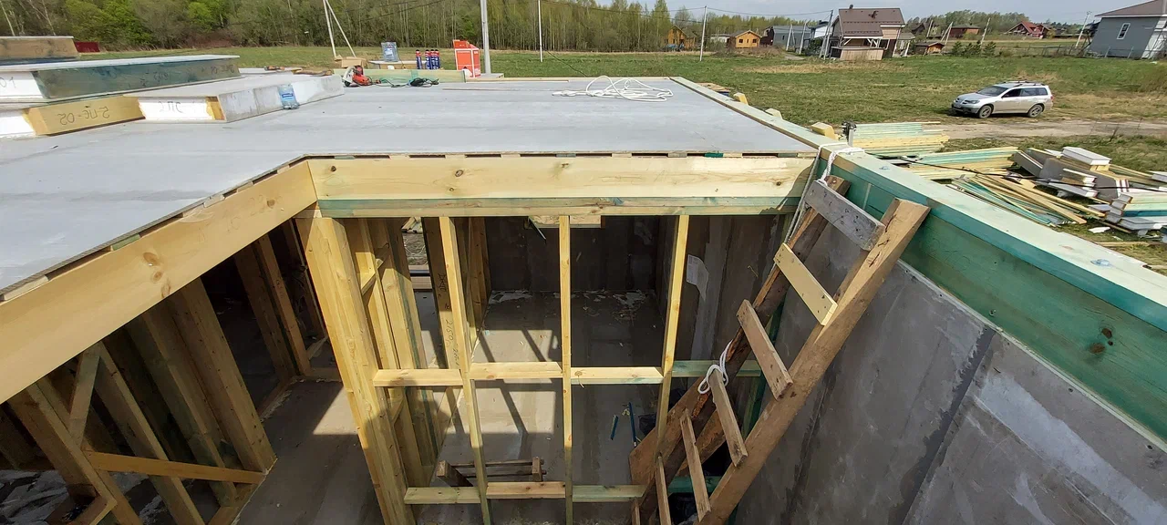 Ростверк изготовлен из калиброванного клееного бруса и защищен снаружи цементно-стружечной плитой