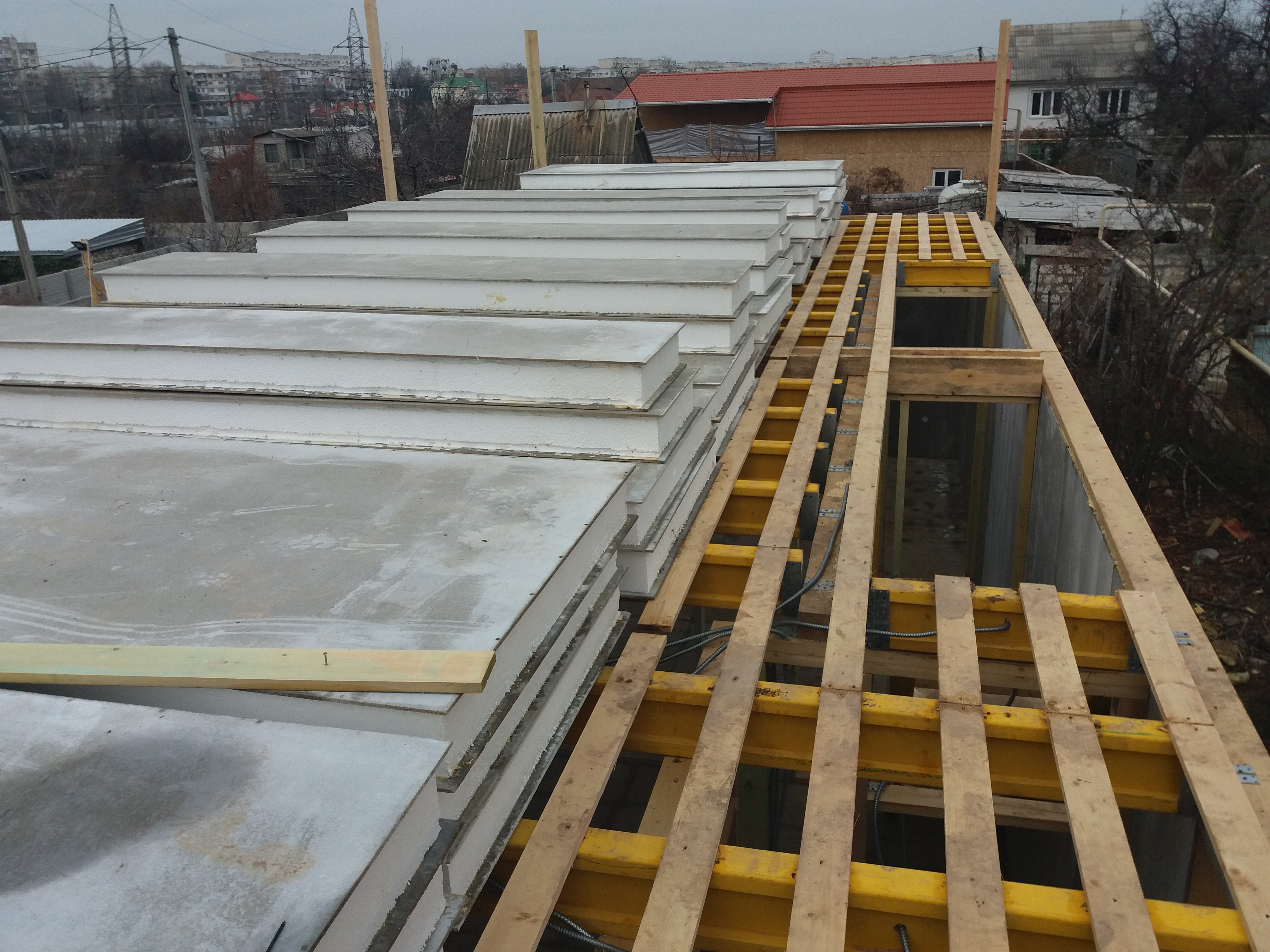 Ростверк изготовлен из калиброванного клееного бруса и защищен снаружи цементно-стружечной плитой