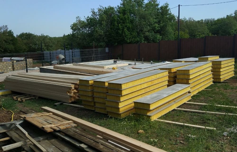 • внутренний теплоизоляционный слой с толщиной 148 мм двух типов: полистирол ПСБ-25 (плотностью 25 кг/м3) или минеральная вата ISOVER (плотностью 64 кг/м3).