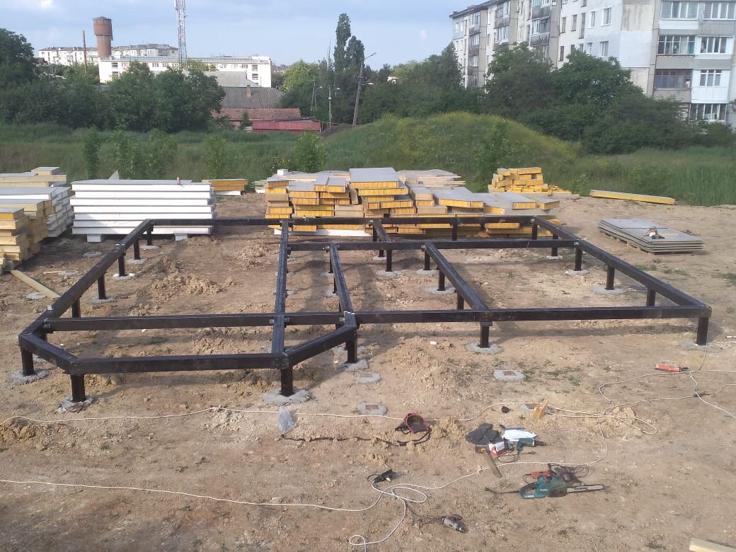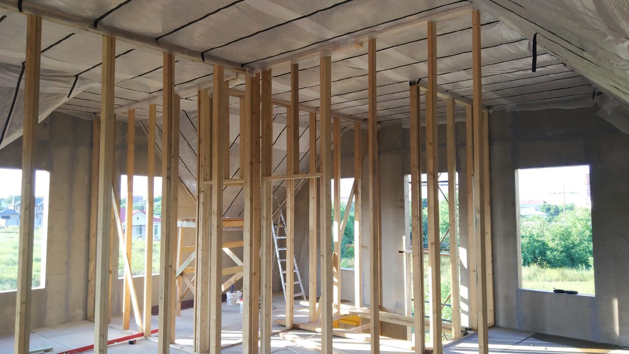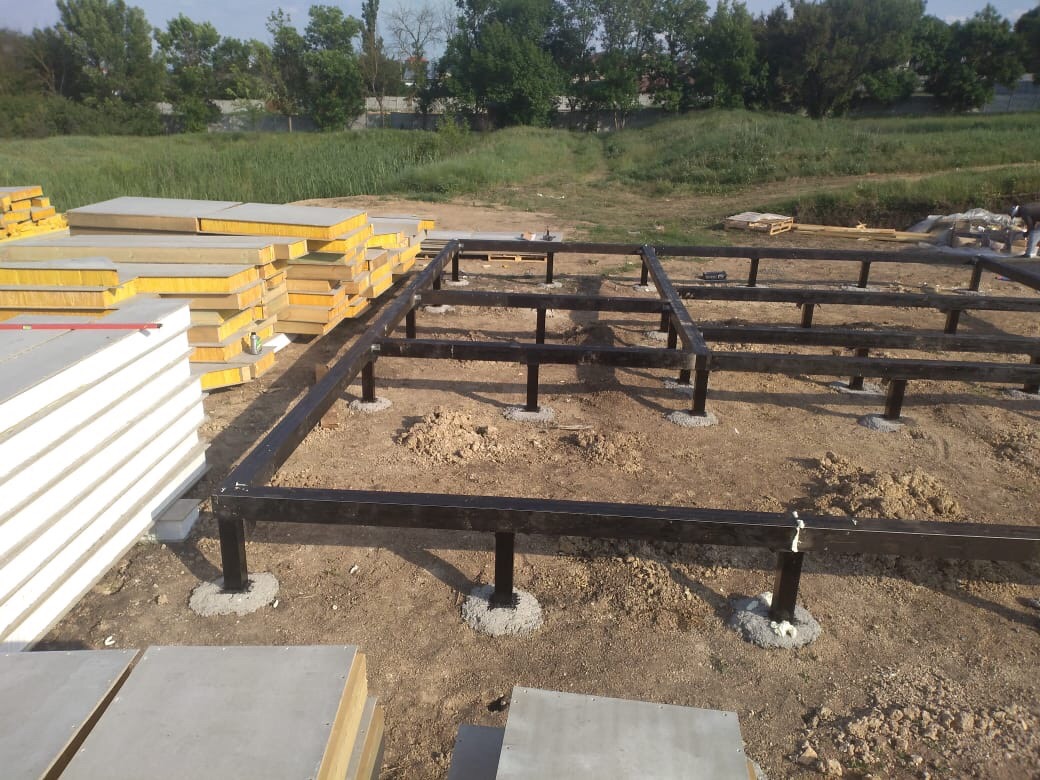 Ростверк изготовлен из калиброванного клееного бруса и защищен снаружи цементно-стружечной плитой