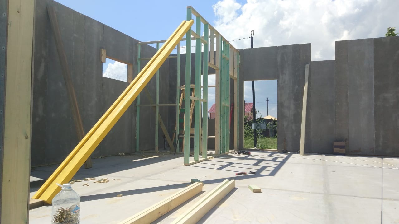 Ростверк изготовлен из калиброванного клееного бруса и защищен снаружи цементно-стружечной плитой