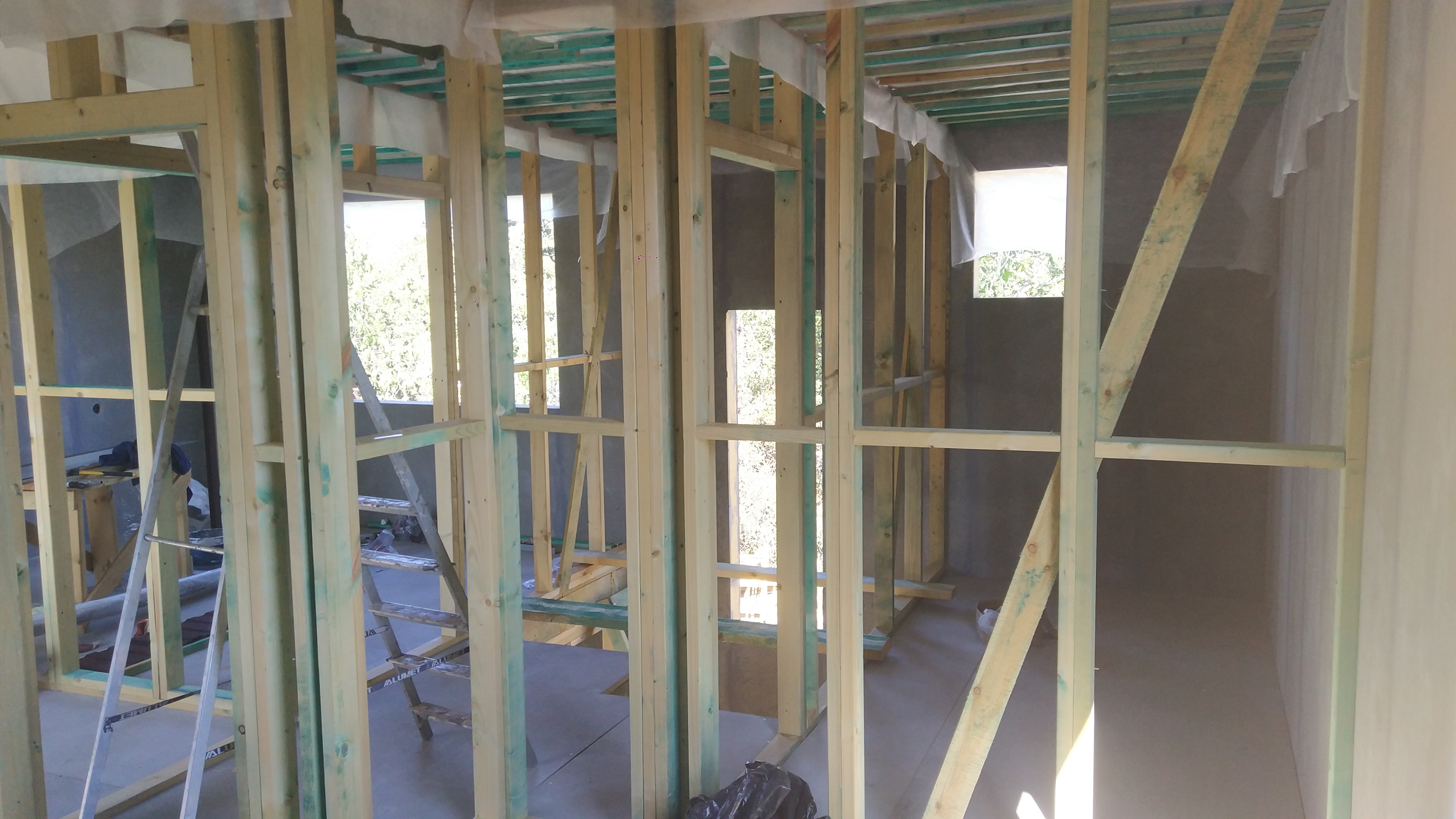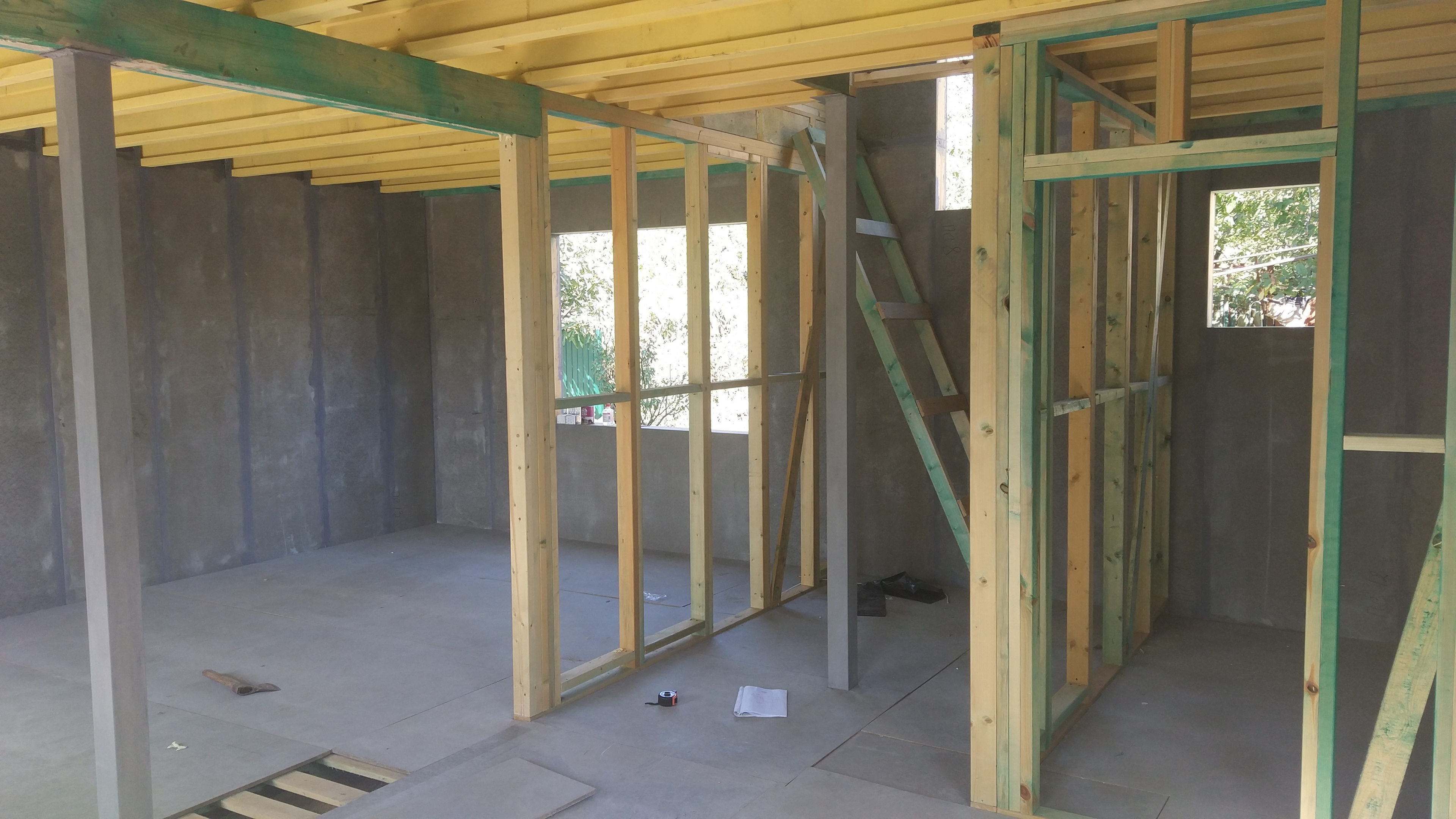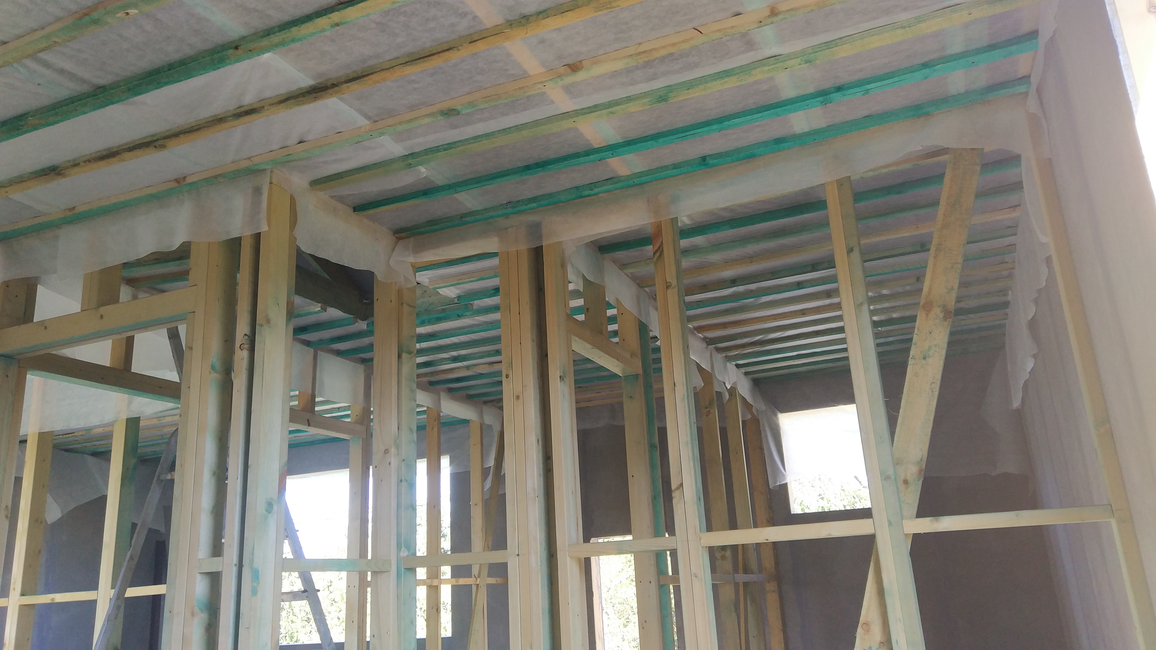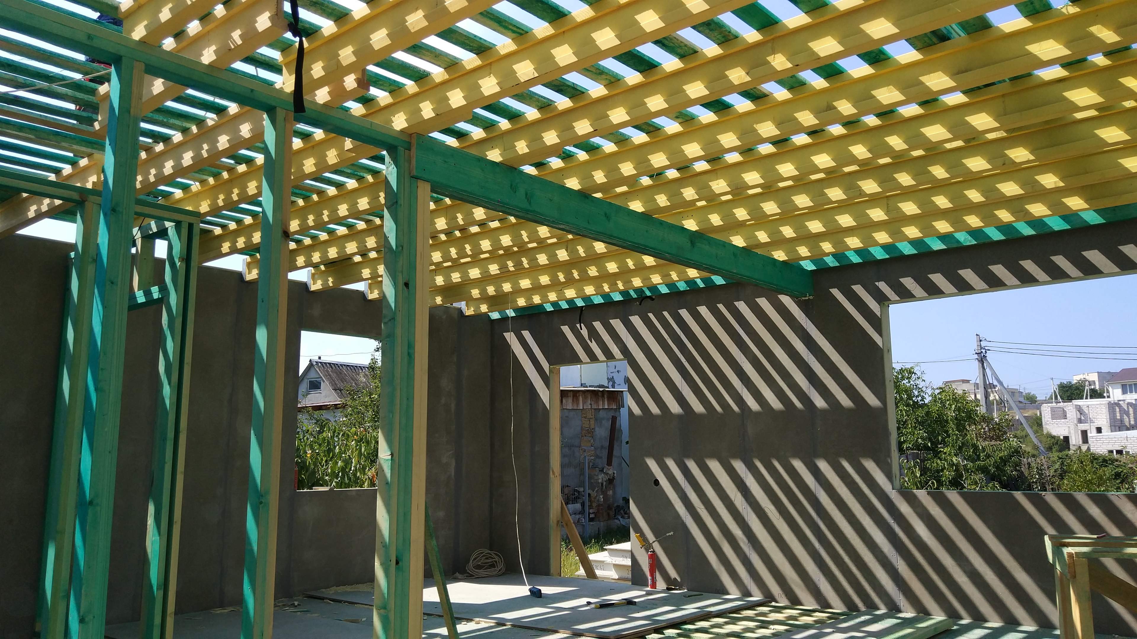 Ростверк изготовлен из калиброванного клееного бруса и защищен снаружи цементно-стружечной плитой