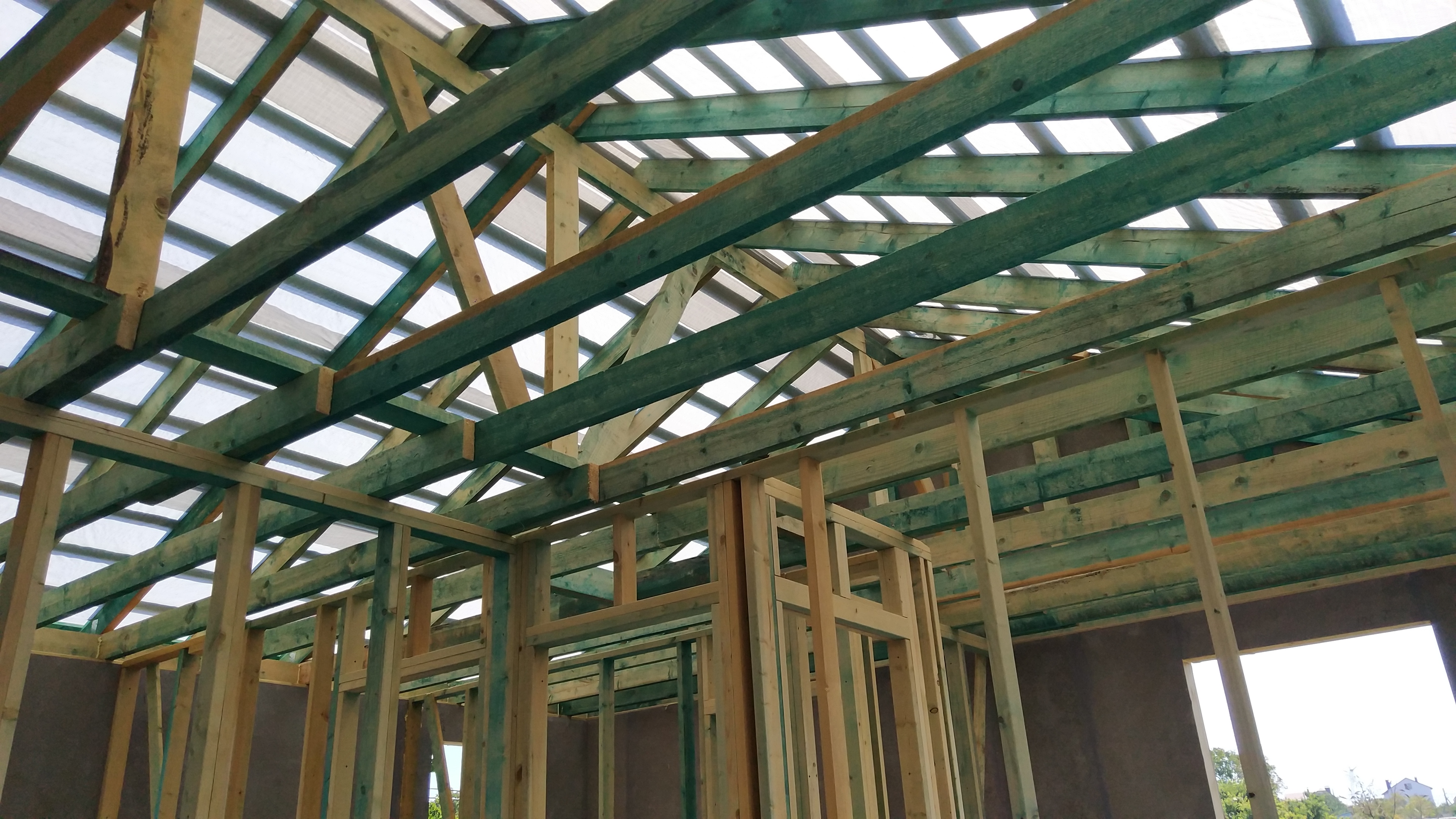 Кровля может быть построена из бруса 150х50мм или SIP панелей. В качестве кровельного материала можно использовать: металлочерепицу, битумную и керамическую черепицу. Также производим кровельные шовные сэндвич-панели.