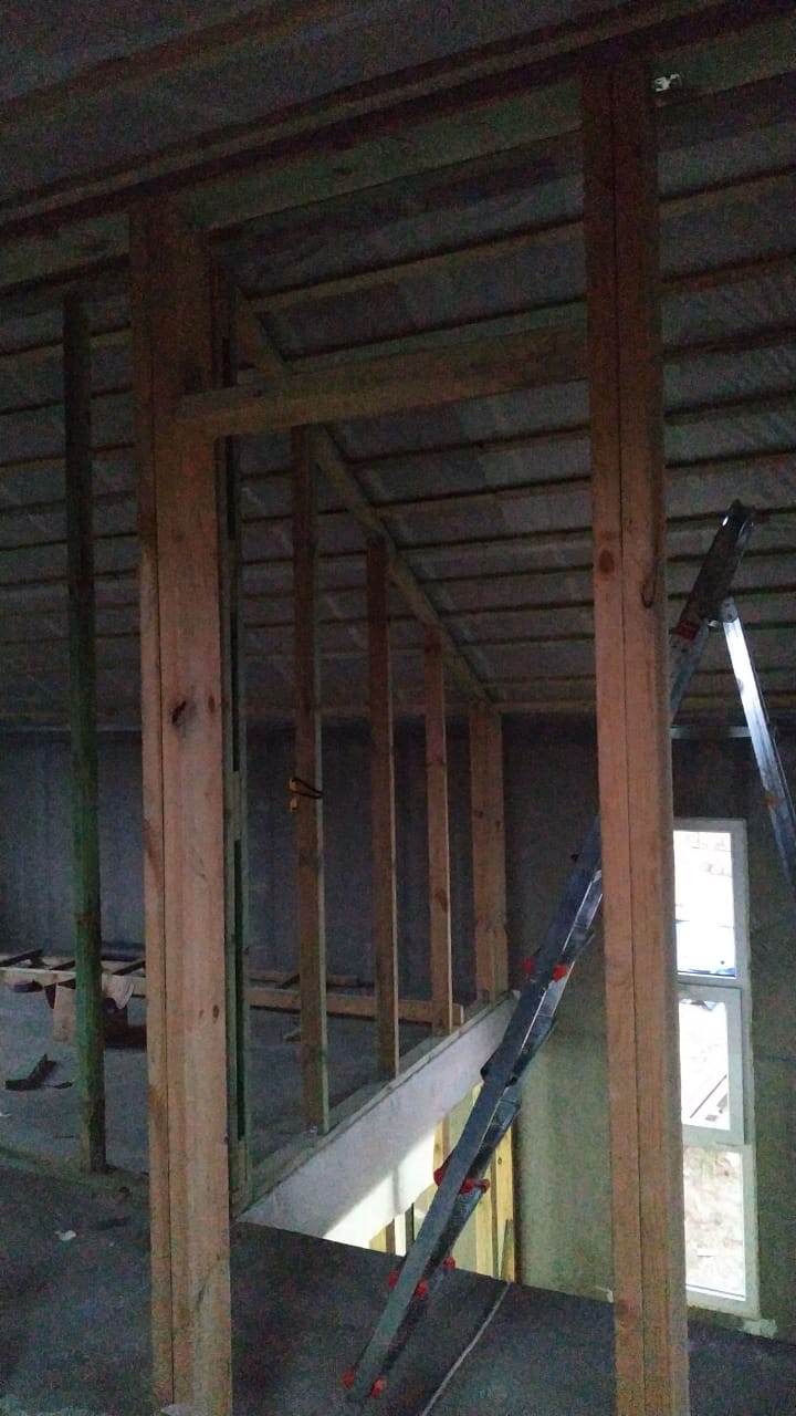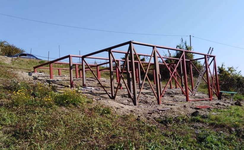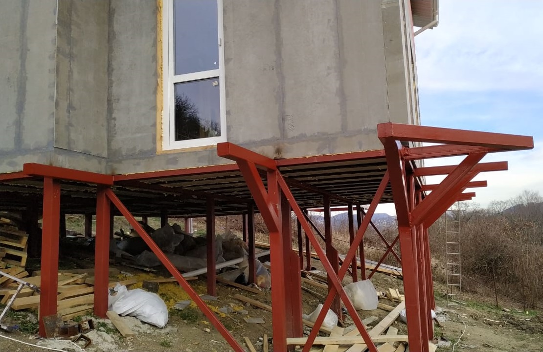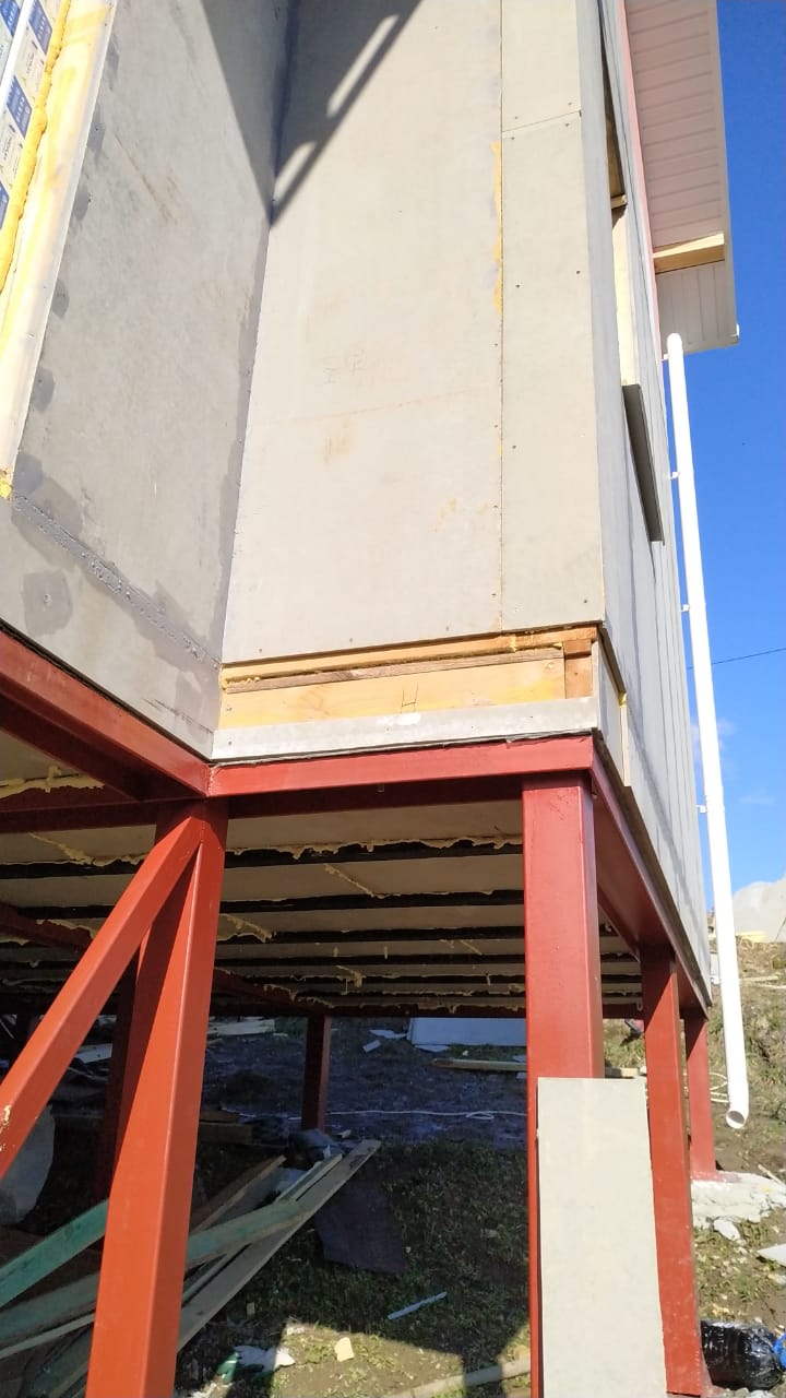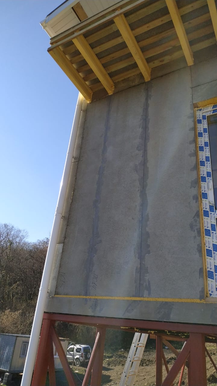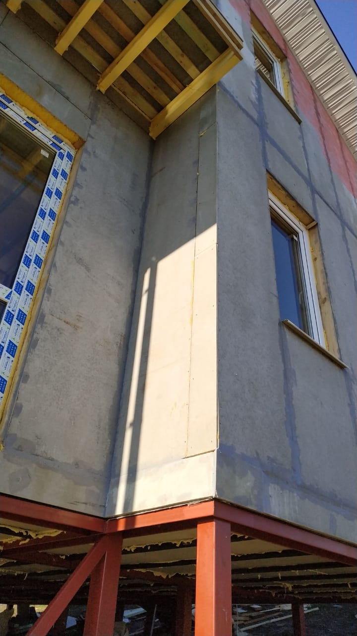 Ростверк изготовлен из калиброванного клееного бруса и защищен снаружи цементно-стружечной плитой