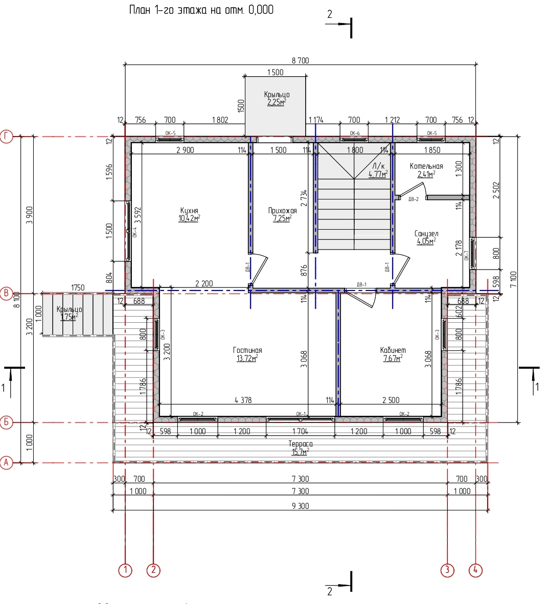 Площадь застройки – 74.74 м2