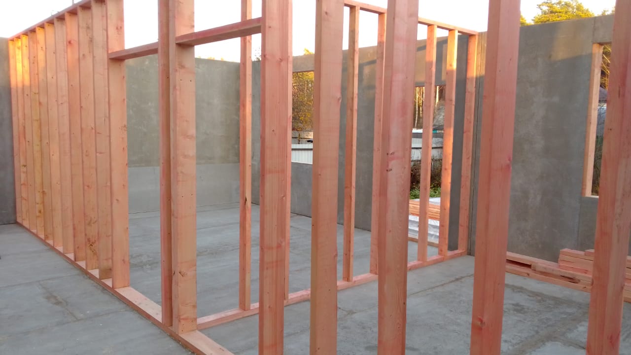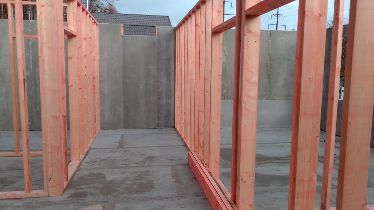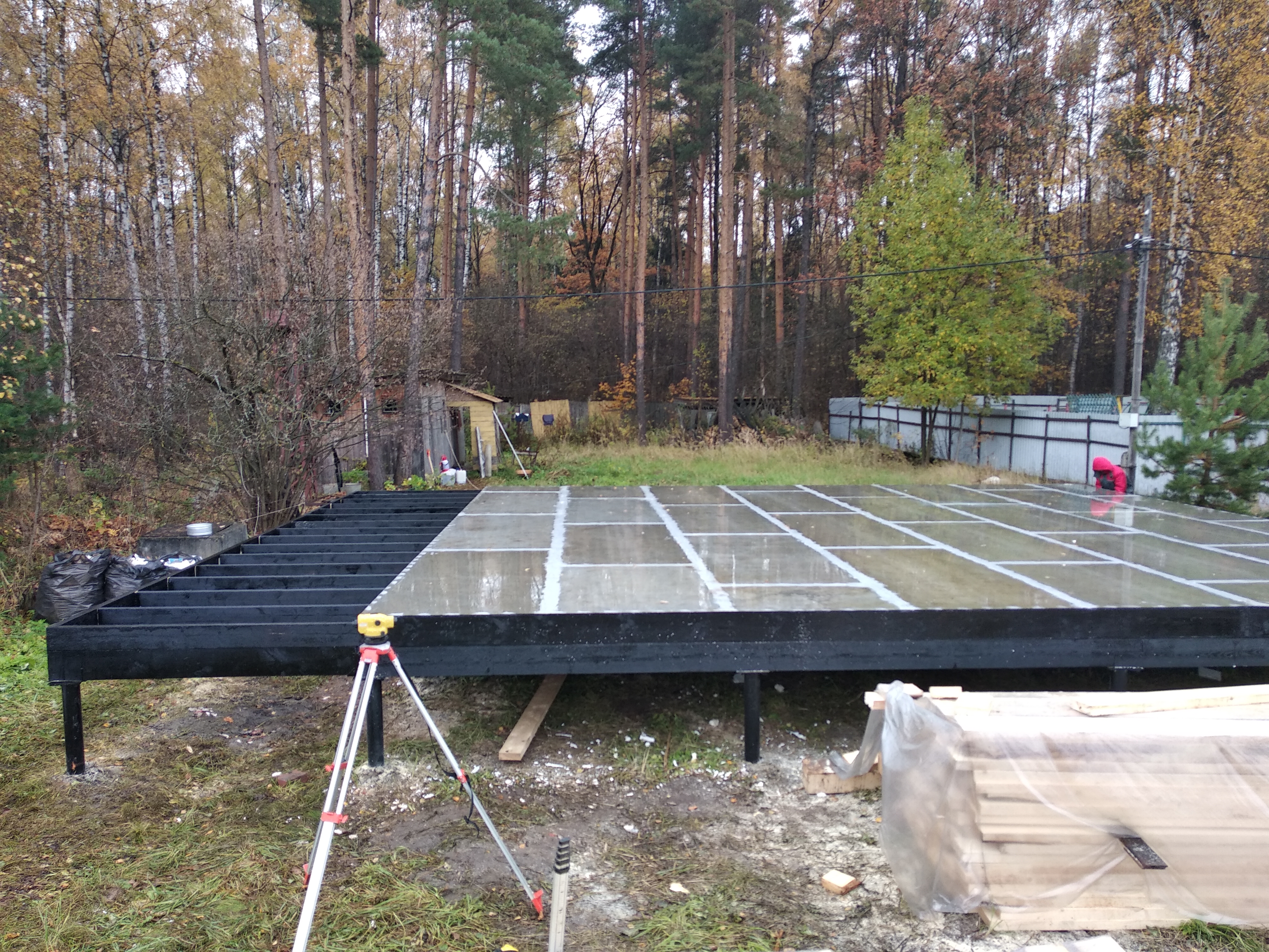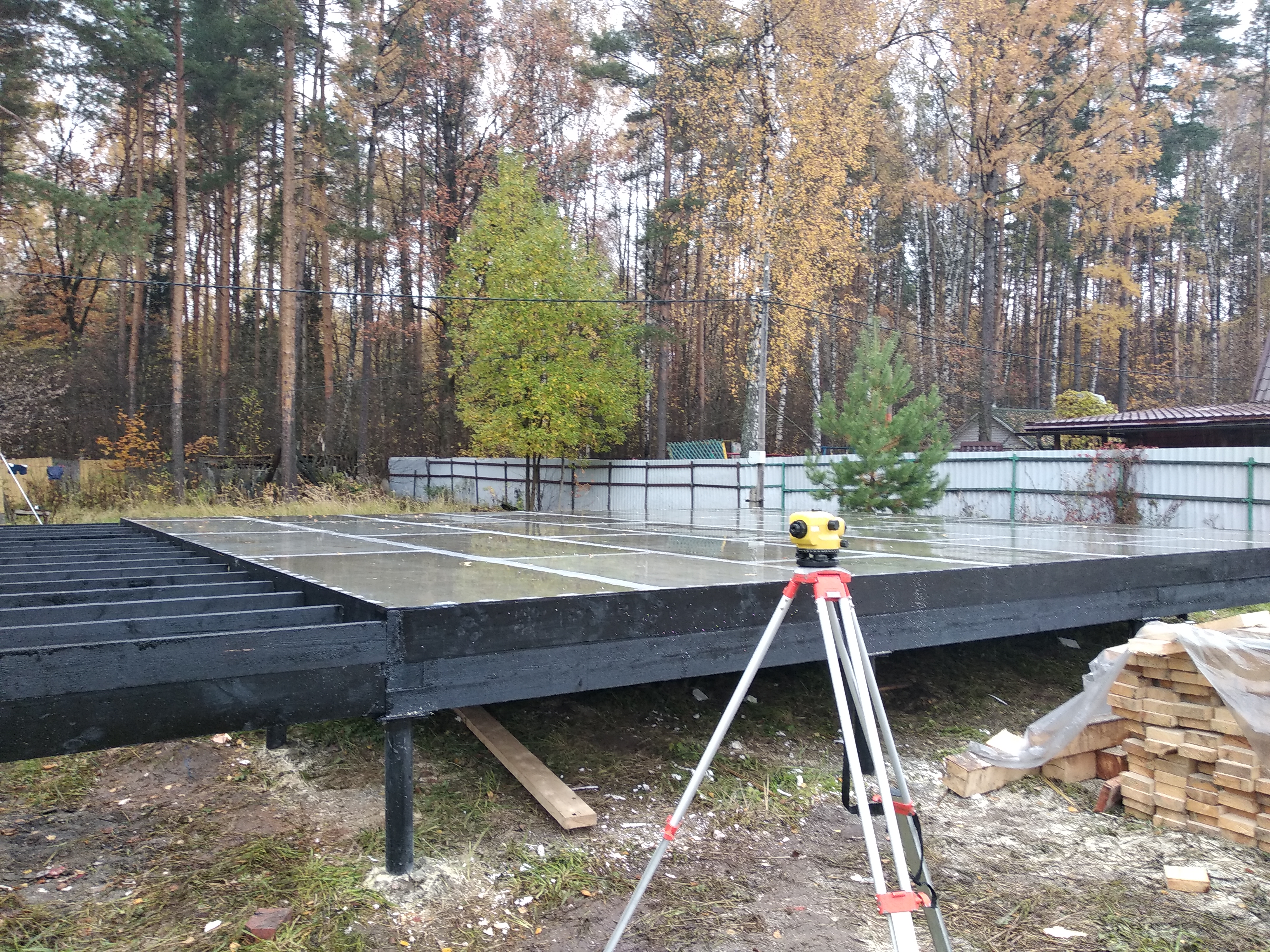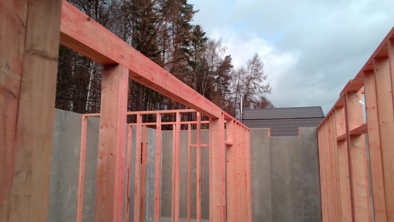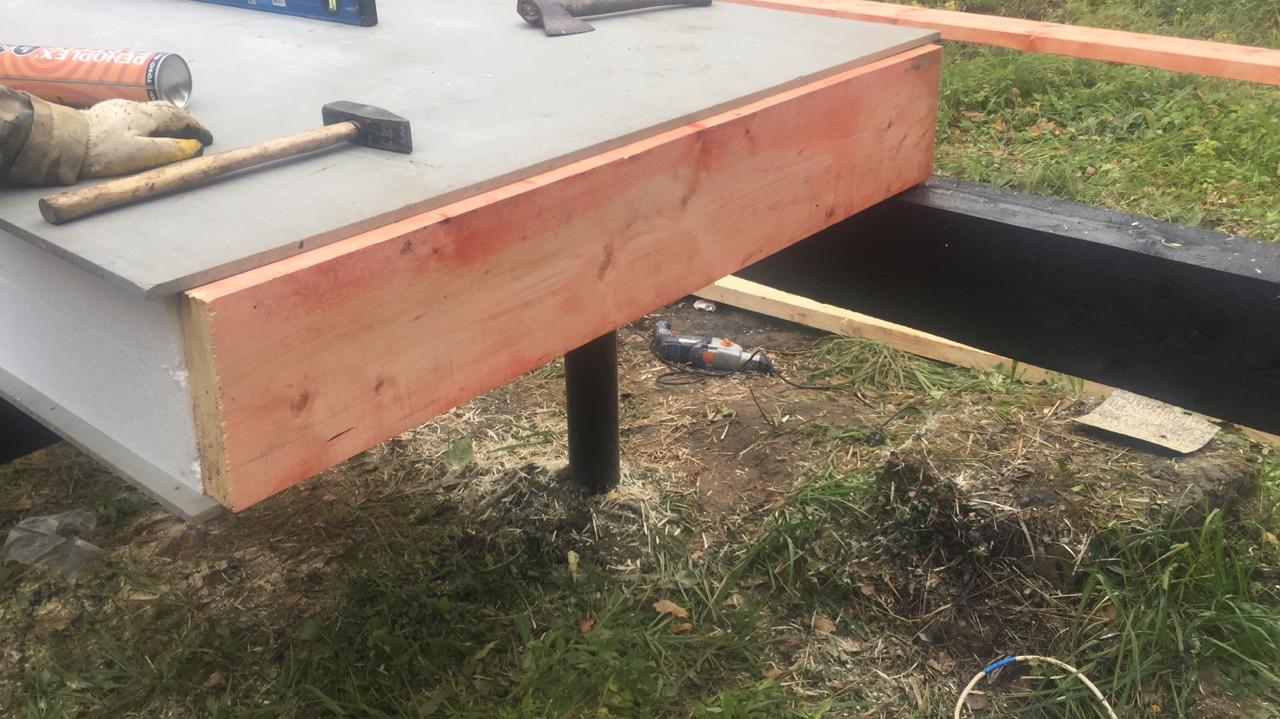 Ростверк изготовлен из калиброванного клееного бруса и защищен снаружи цементно-стружечной плитой