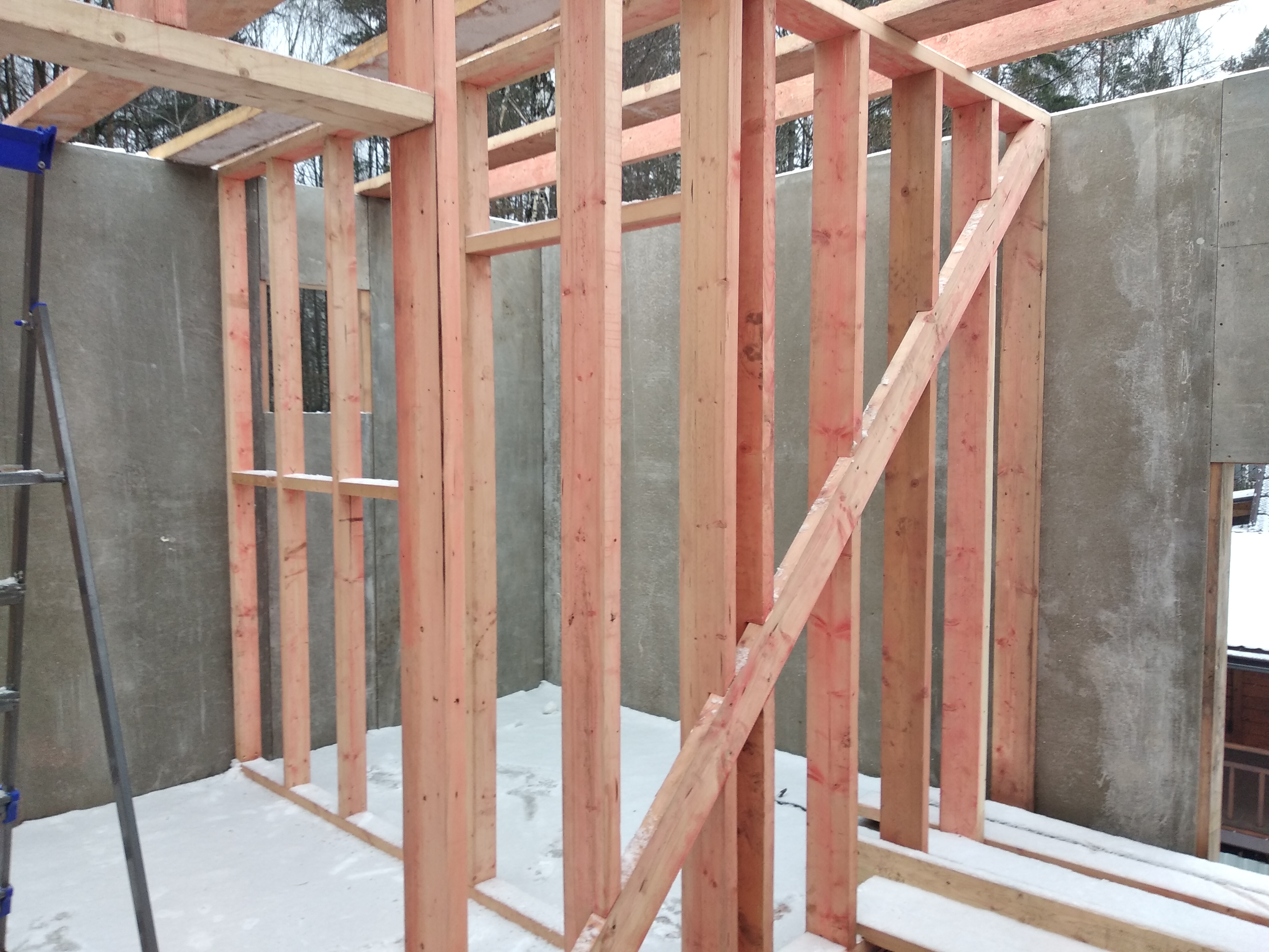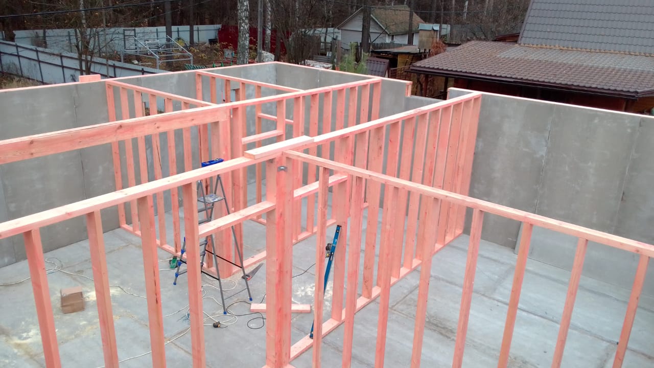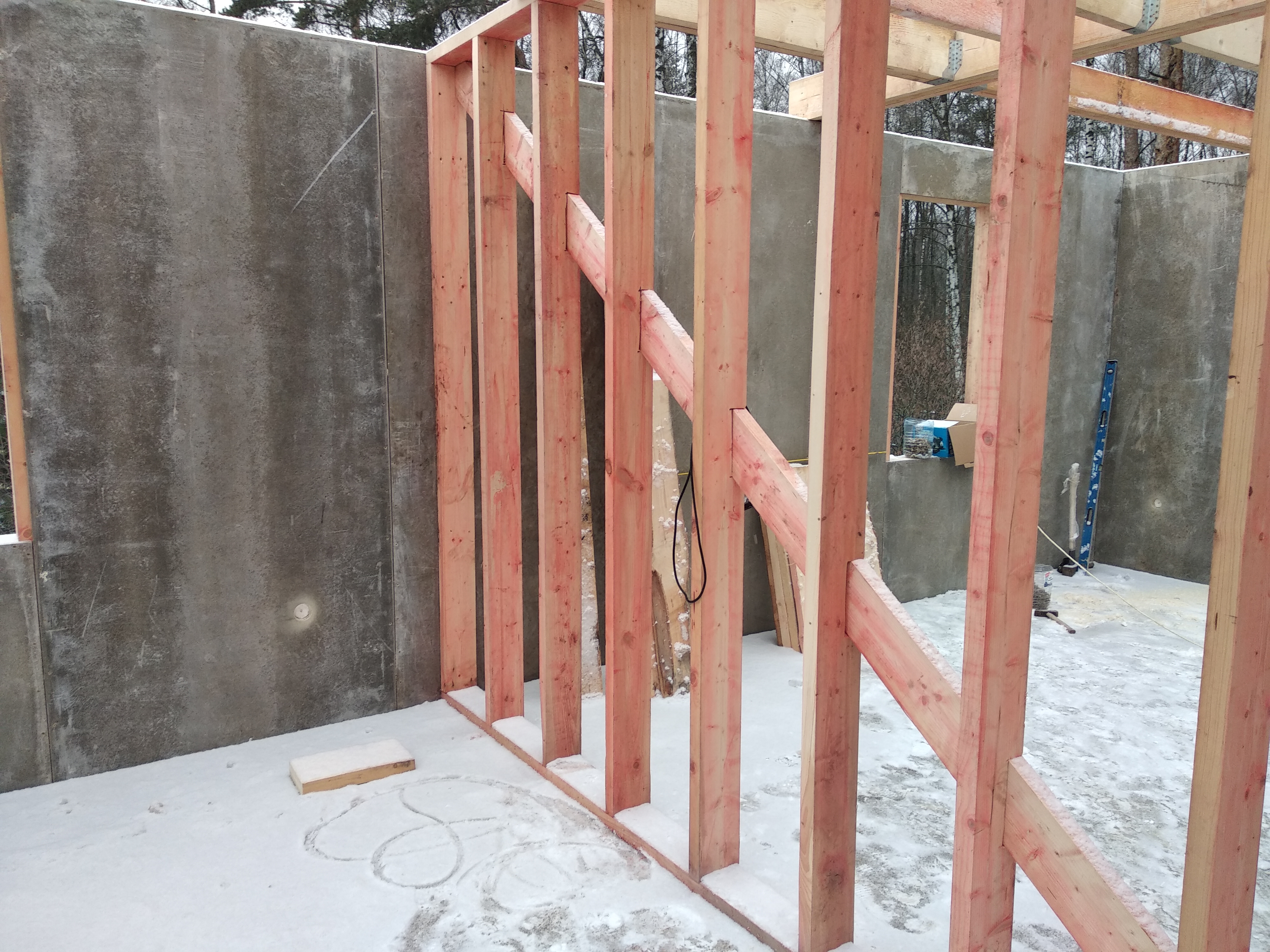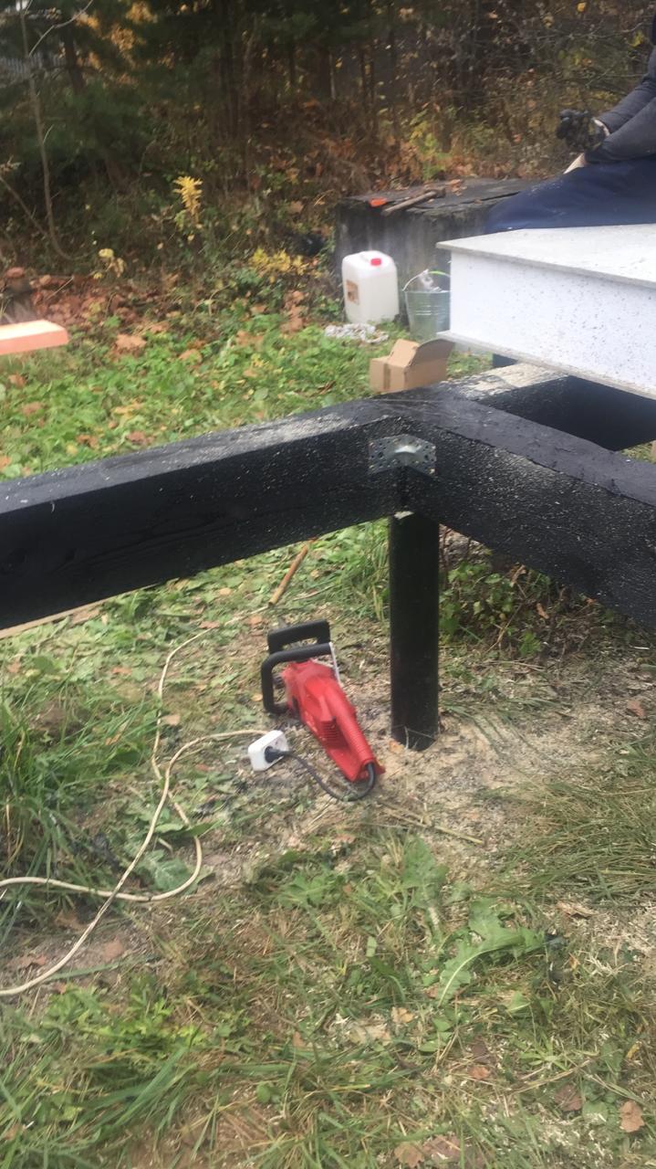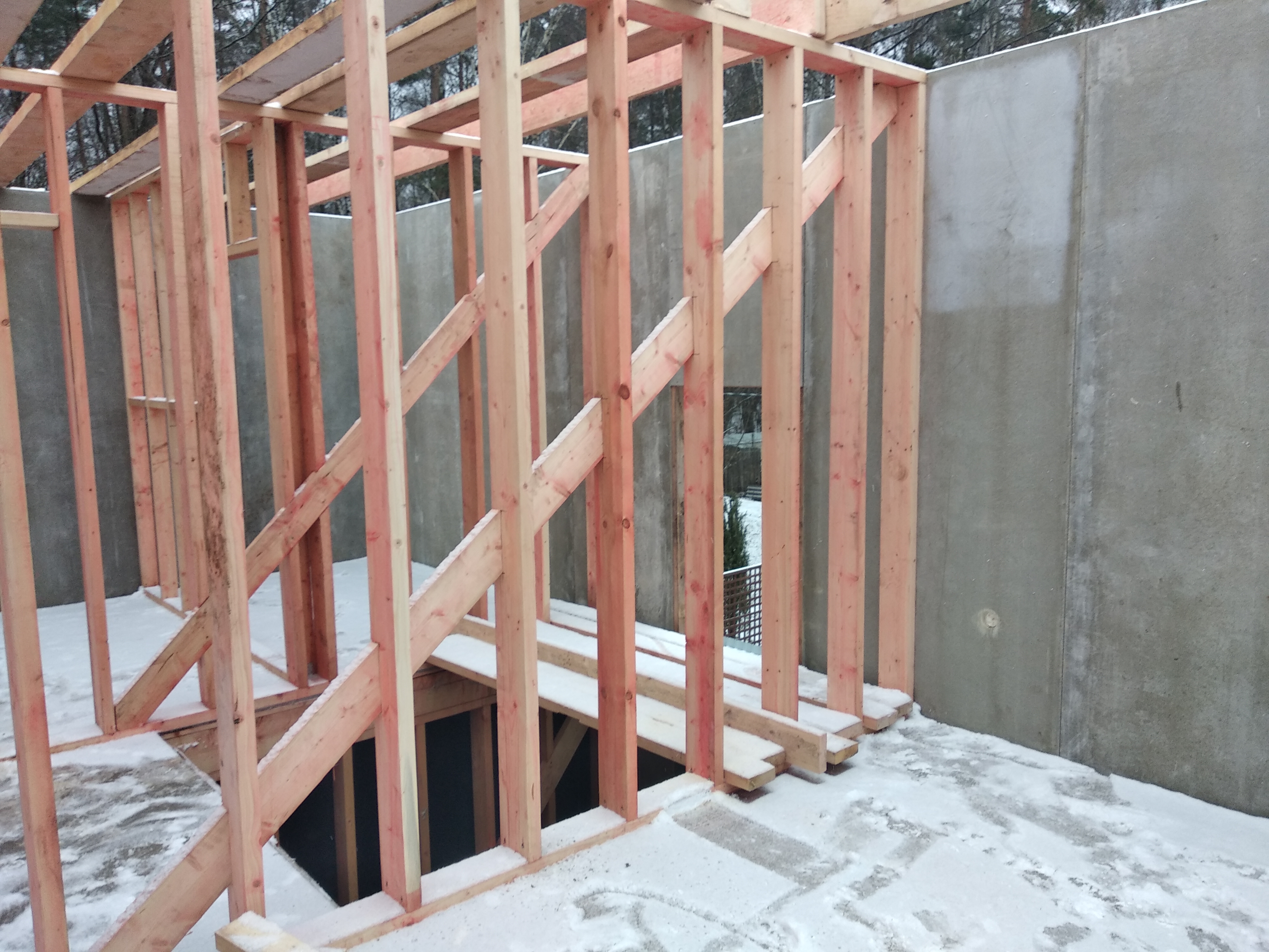 Ростверк изготовлен из калиброванного клееного бруса и защищен снаружи цементно-стружечной плитой