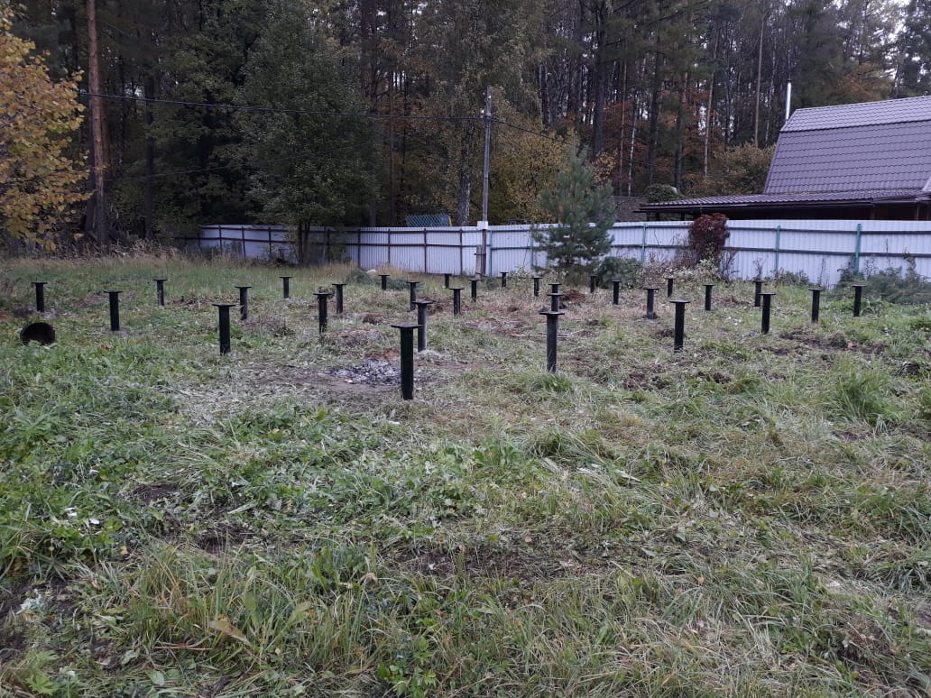Тип фундамента - деревянный ростверк на металлических лопастных сваях