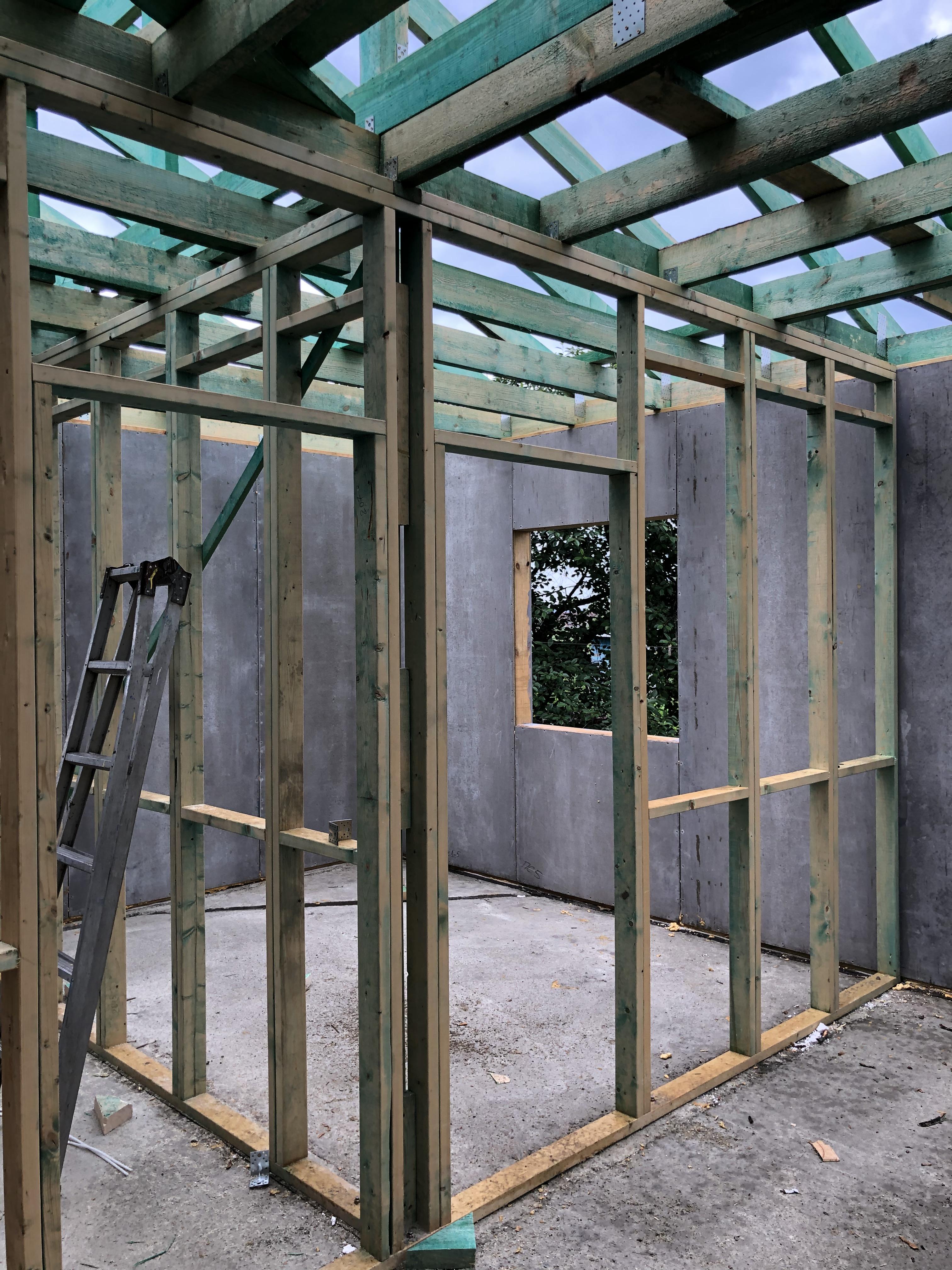 Ростверк изготовлен из калиброванного клееного бруса и защищен снаружи цементно-стружечной плитой