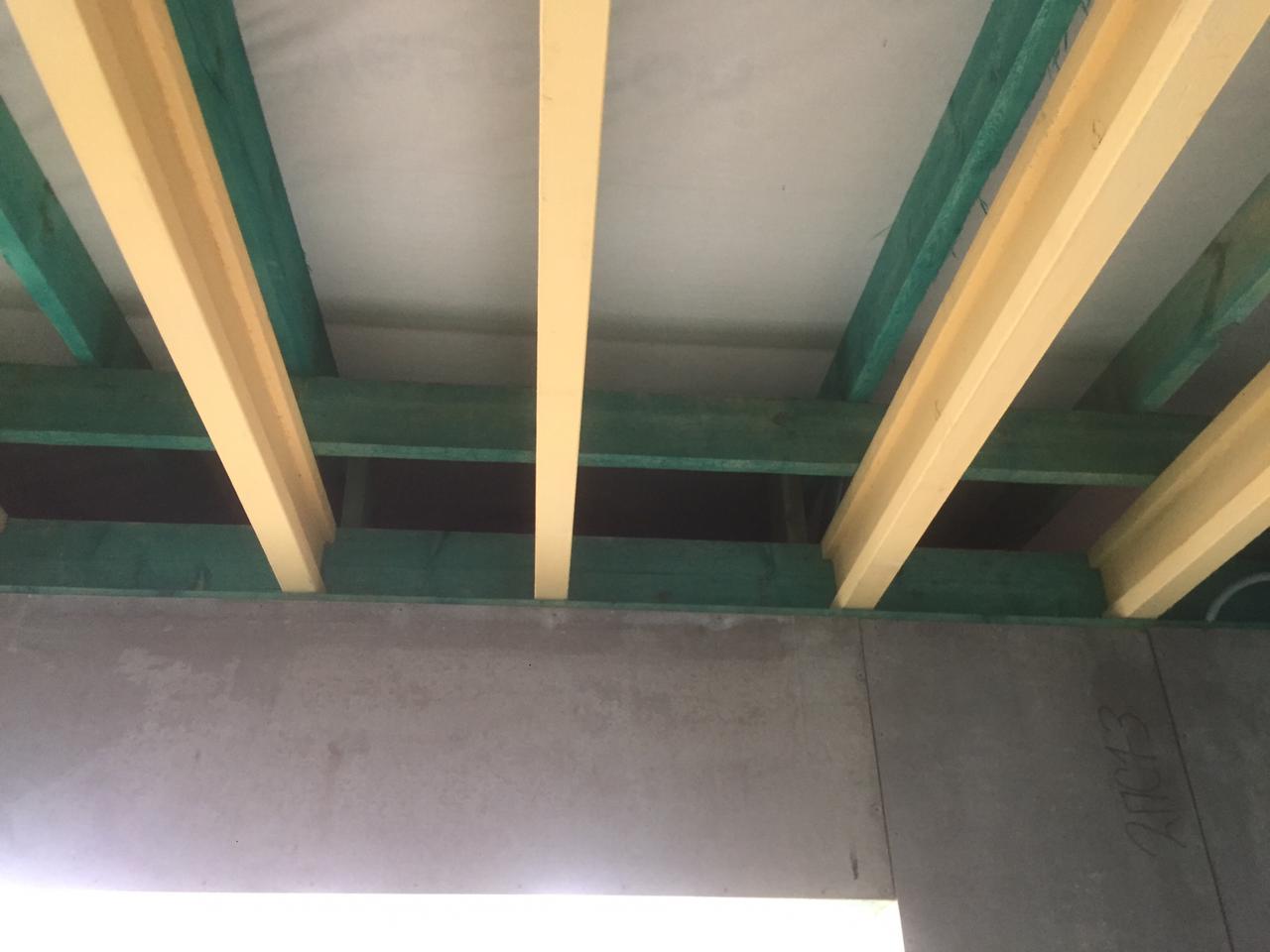 Ростверк изготовлен из калиброванного клееного бруса и защищен снаружи цементно-стружечной плитой