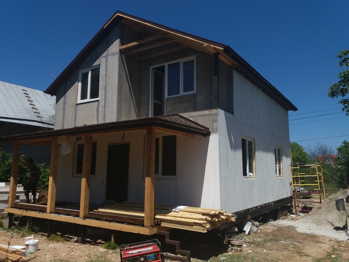 — это полностью готовый теплый контур дома. В данном случае дом полностью готов к монтажу внутренних инженерных сетей, звукоизоляции