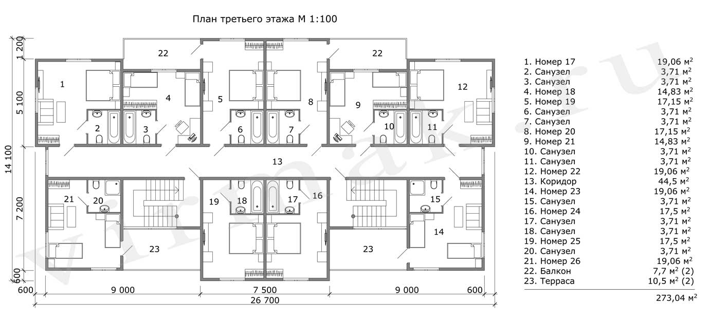 План этажа м 1:100