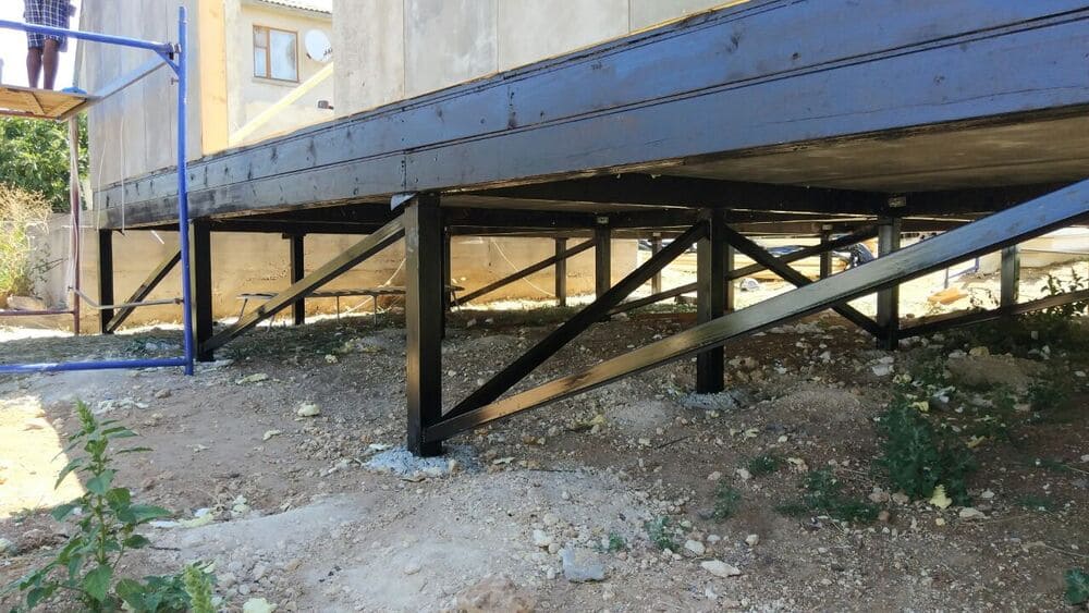 Ростверк изготовлен из калиброванного клееного бруса и защищен снаружи цементно-стружечной плитой